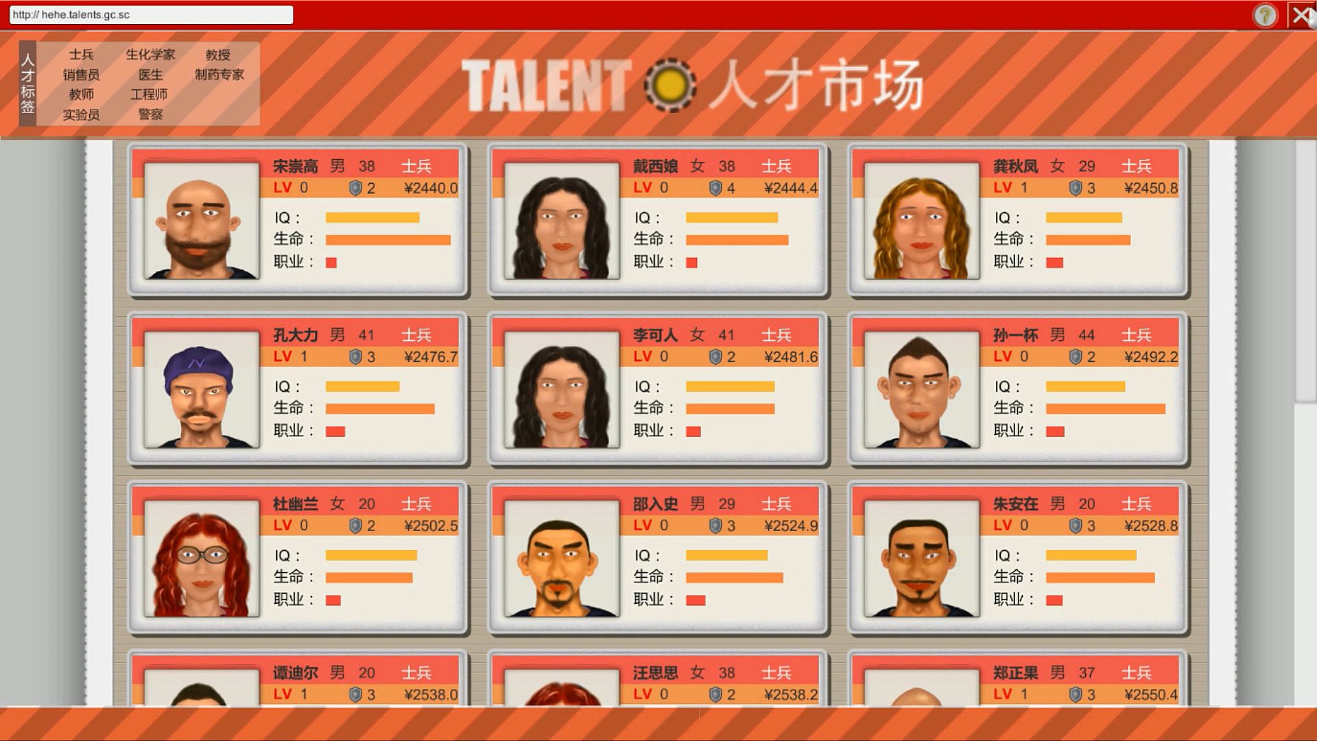 • Every character in game has thier individual personality, job, health. such as a brave sodier will try his best to fight when he encounter enemy, but a craven one will run away; dozens job for AI character, you could hire them on the talent market, and manage them from internet in the game, also you can improve their ability if you want.