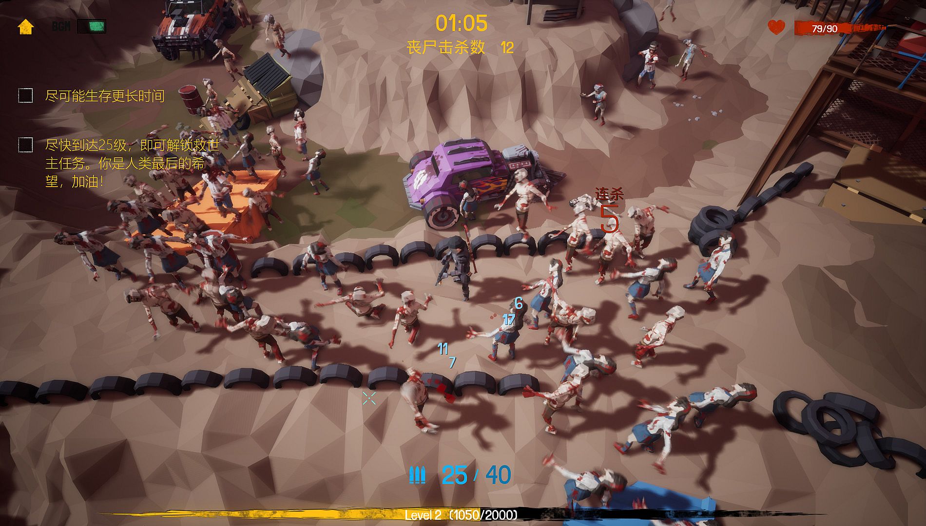 By killing zombies and choosing different talents, you can build a super survivor.