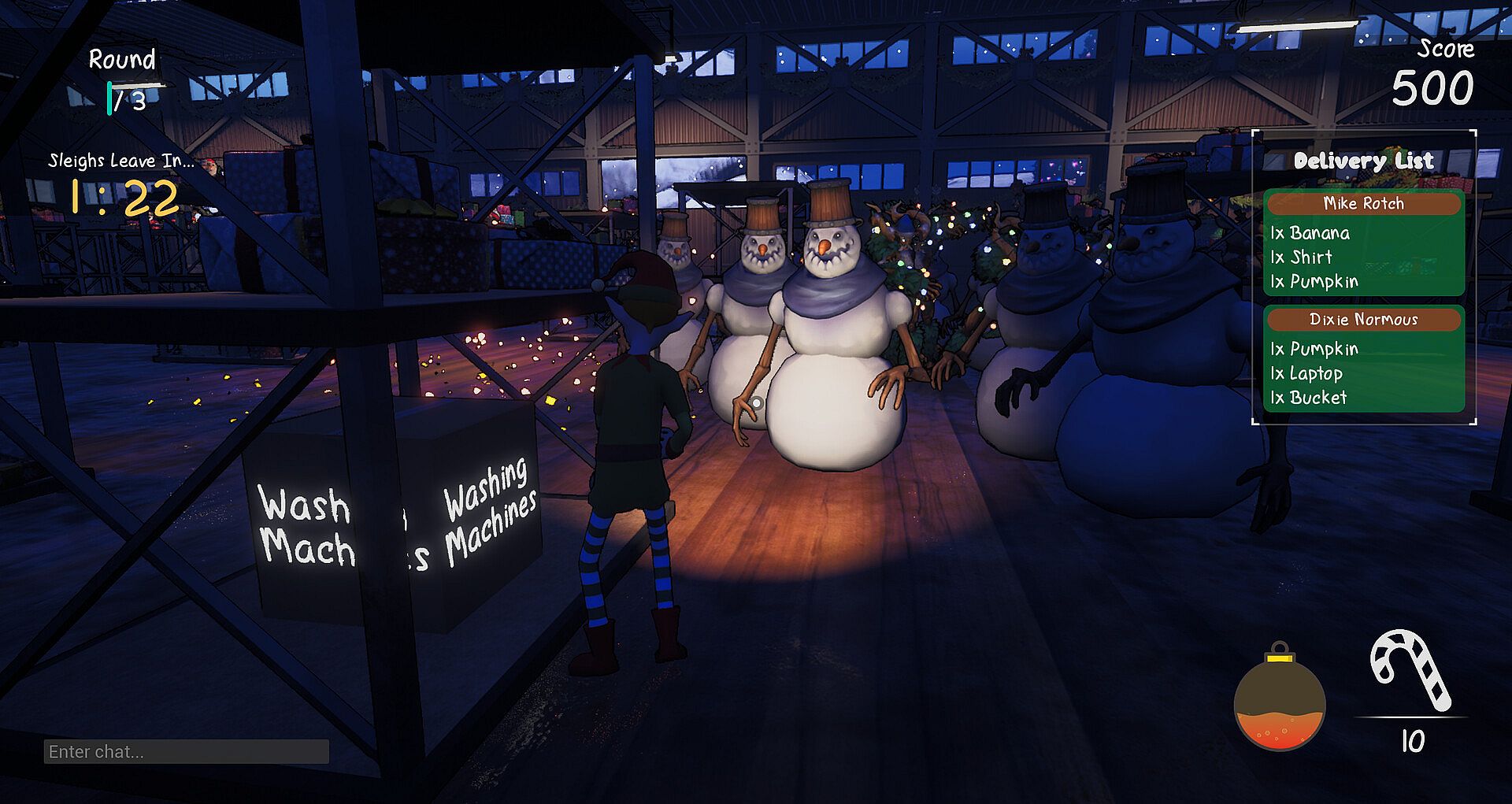 Be prepared to throw both hands and candy to keep yourself alive. Hordes of monsters are always sneaking in, despite the constant health and safety complaints to Santa. Find holiday-themed weapons and power-ups, and clear a path for a successful shift. Or use your teammates as meat shields while you get the deliveries in on your own.