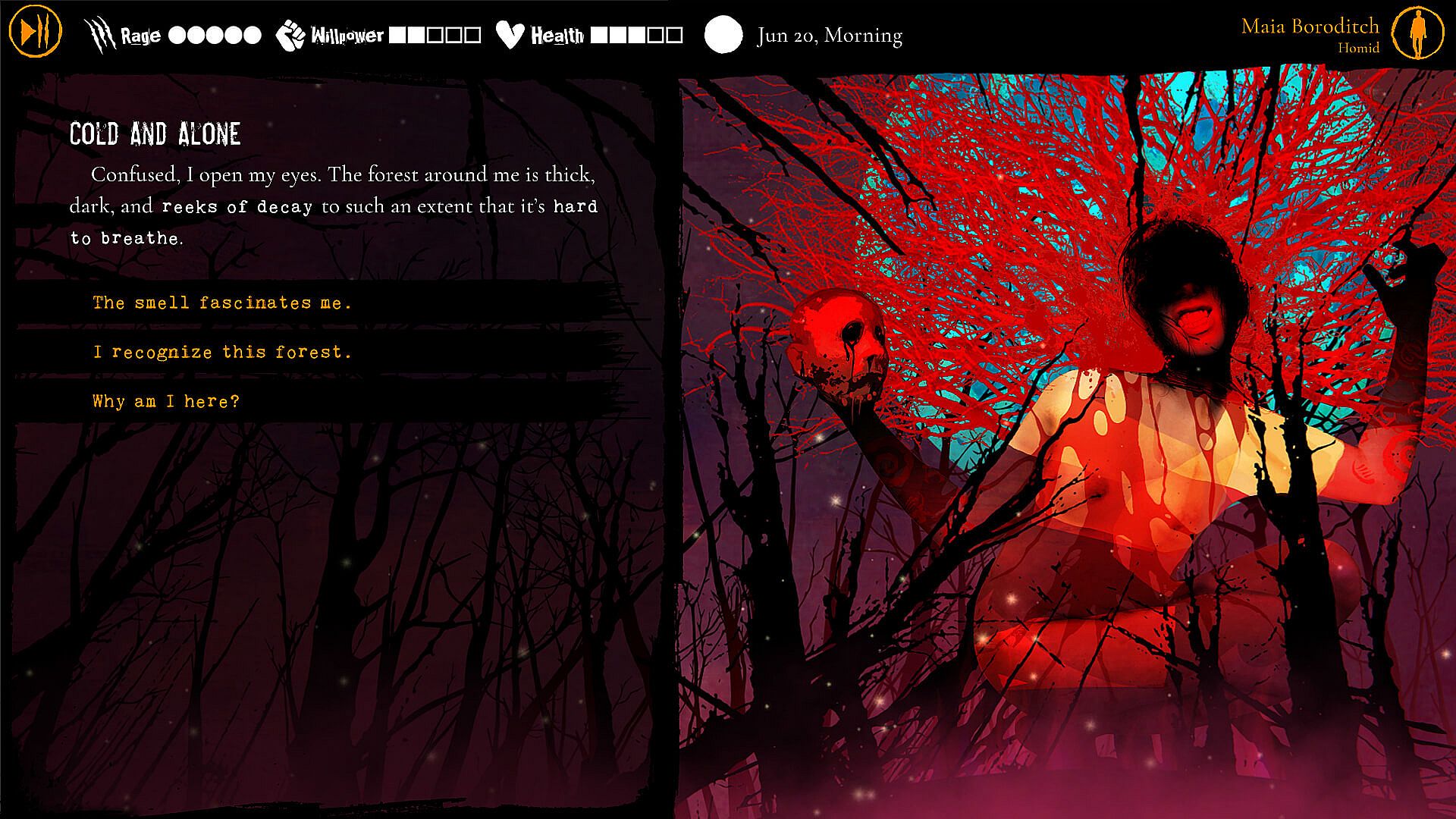 By making tough choices that often bring dramatic consequences, you will affect your character attributes: Rage, Willpower, and Health. This impacts your ability to perform certain actions as well as change the range of available choices and the presentation of the world. The game will analyze your behavior and determine what kind of werewolf you are.