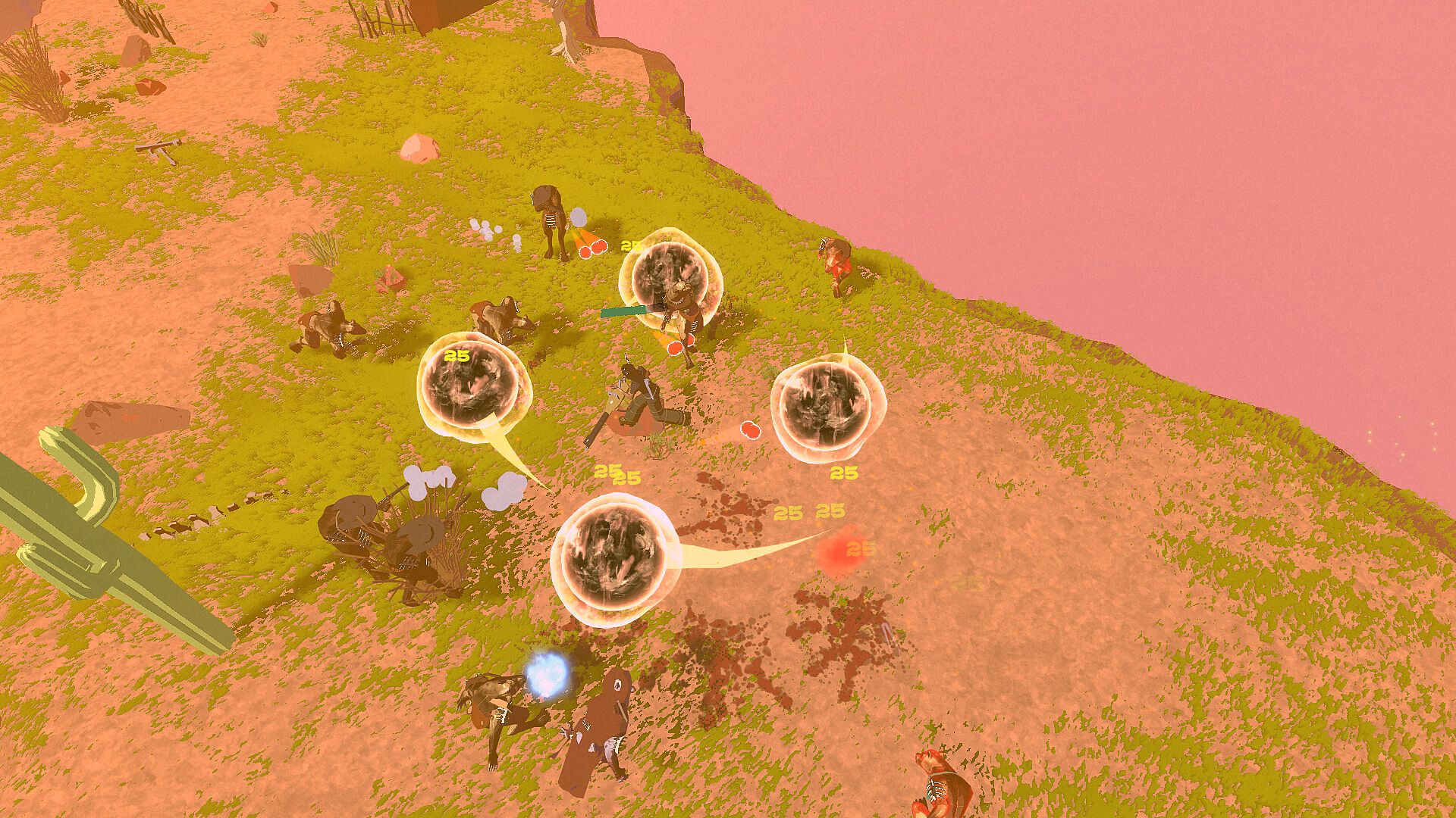 Fight hordes of gnoll thralls in an occult western setting with chaotic twin-stick shooting. This top-down action roguelike on PC features cooperative play, where players wield spells and firearms against enemies that strengthen under the rising moon. Maps pull from tilesets that assemble randomly for fresh layouts each run, spanning desert, forest, and mountain biomes. Customize weapons using mystical runes for effects like explosive revolver shots or homing Gatling rounds. Push deeper toward an ancient entity hidden in the mountains as the gnoll packs thicken. Fans of replayable roguelikes with rune upgrades and co-op shooting will find a solid loop here.