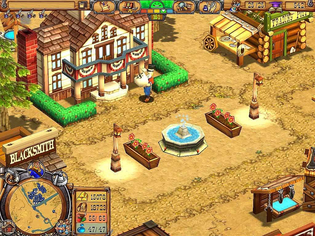 Build and defend settlements in the Wild West as three pioneers stake their claim amid abundant gold and lurking bandits. Gather resources from uncharted terrain to expand dusty tents into thriving boomtowns, customizing with over 50 buildings, luxuries, and upgrades while hiring lawmen and gunslingers for protection. Battle enemies like ferocious wild animals, overcome natural disasters, and explore new environments with powerful building, weapon, and environmental upgrades. This casual collection guides settlers through over 20 levels of frontier challenges, including unique buildings, resource trading, and sandbox modes with extra maps. Unlock secret items and earn awards for accomplishments in evolving scenarios set in outposts like Oxbow Bend. Players who enjoy town-building and defense in bite-sized sessions find hours of strategic fun here.