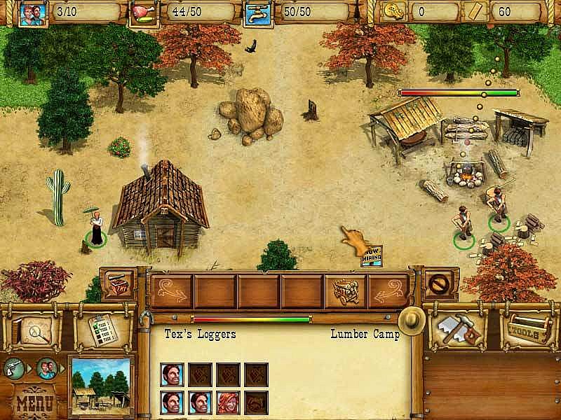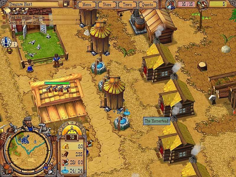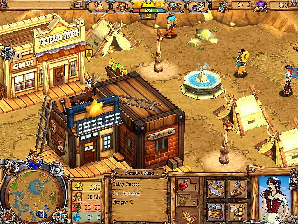 Steer the fortunes of three adventurous pioneers as they build and defend their ever-growing settlement from dangerous bandits determined to cheat or steal from anyone they cross. Explore uncharted terrain rich in natural resources, where gold is abundant and treachery hides behind every handshake, and gather the supplies needed to build your dusty tent settlement into a thriving boomtown. Customize your town with over 50 buildings, luxuries and upgrades, and hire lawmen and gunslingers to keep the peace.
