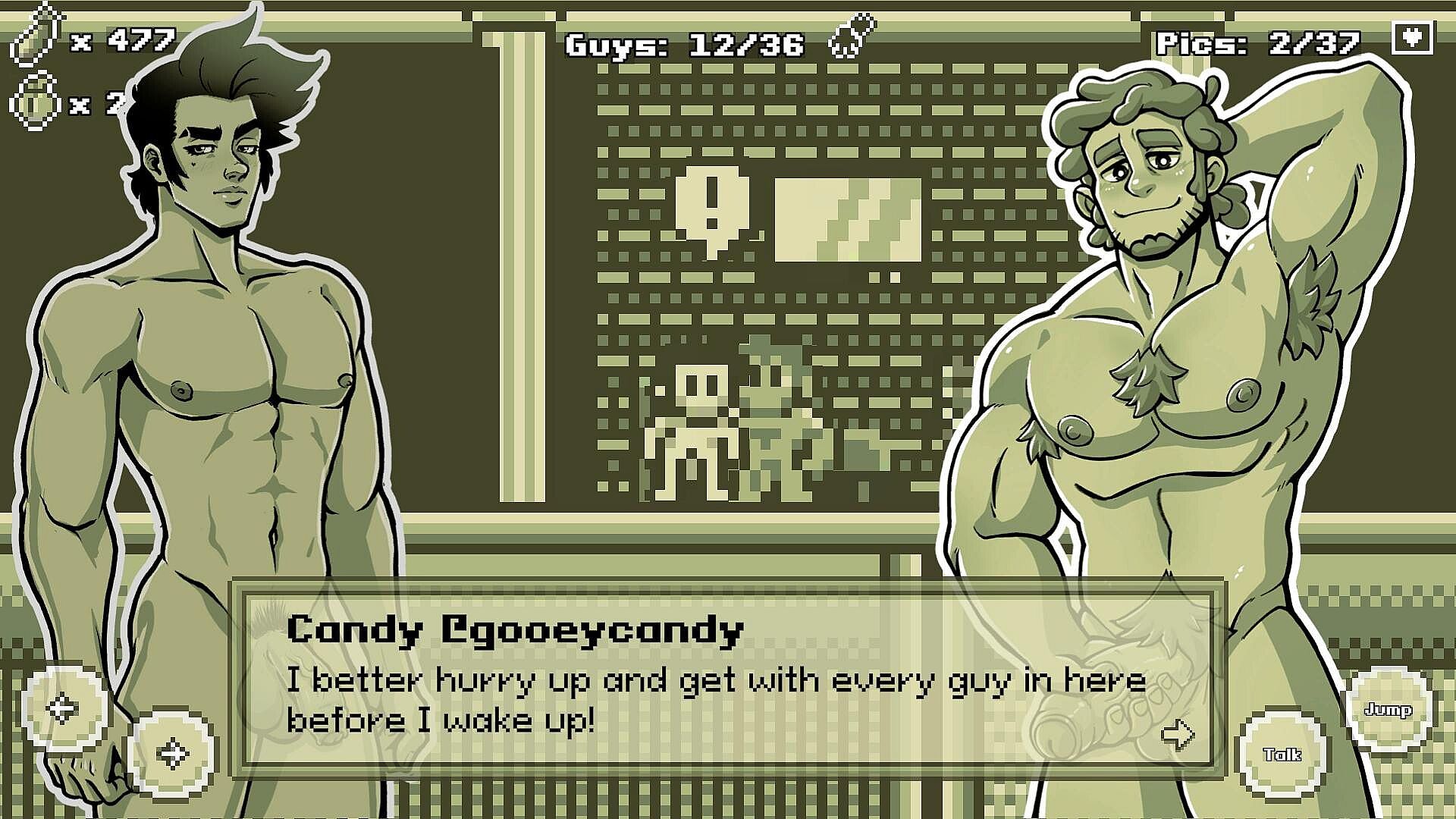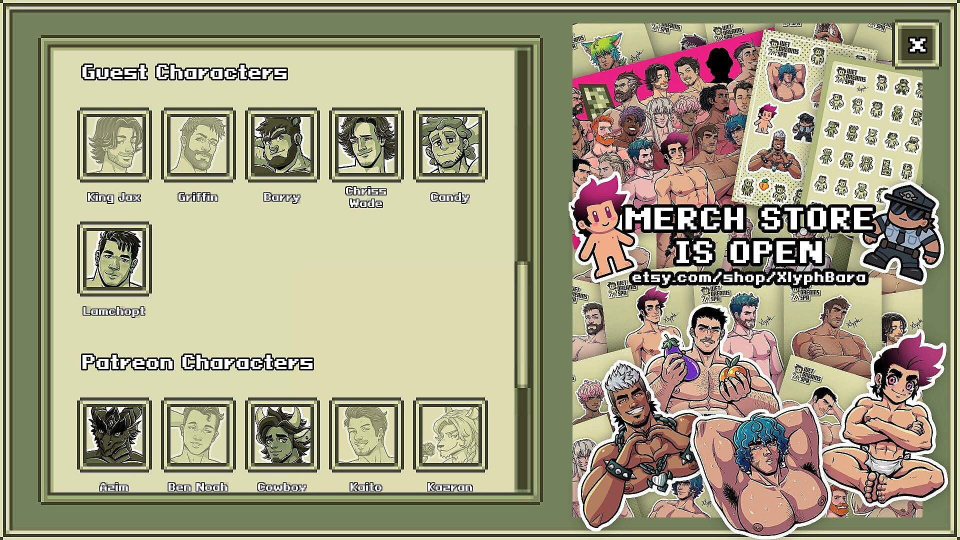 Find hot guys inside the Spa where you can find original characters, Patreon characters, famous characters like King Jax, Griffin Barrows, Chriss Wade and Lamchopt, guest artist like GooeyCandy and ElPrincipeConejo and also go and try to collect all the uncensored pictures hanging around the spa and have fun with them.