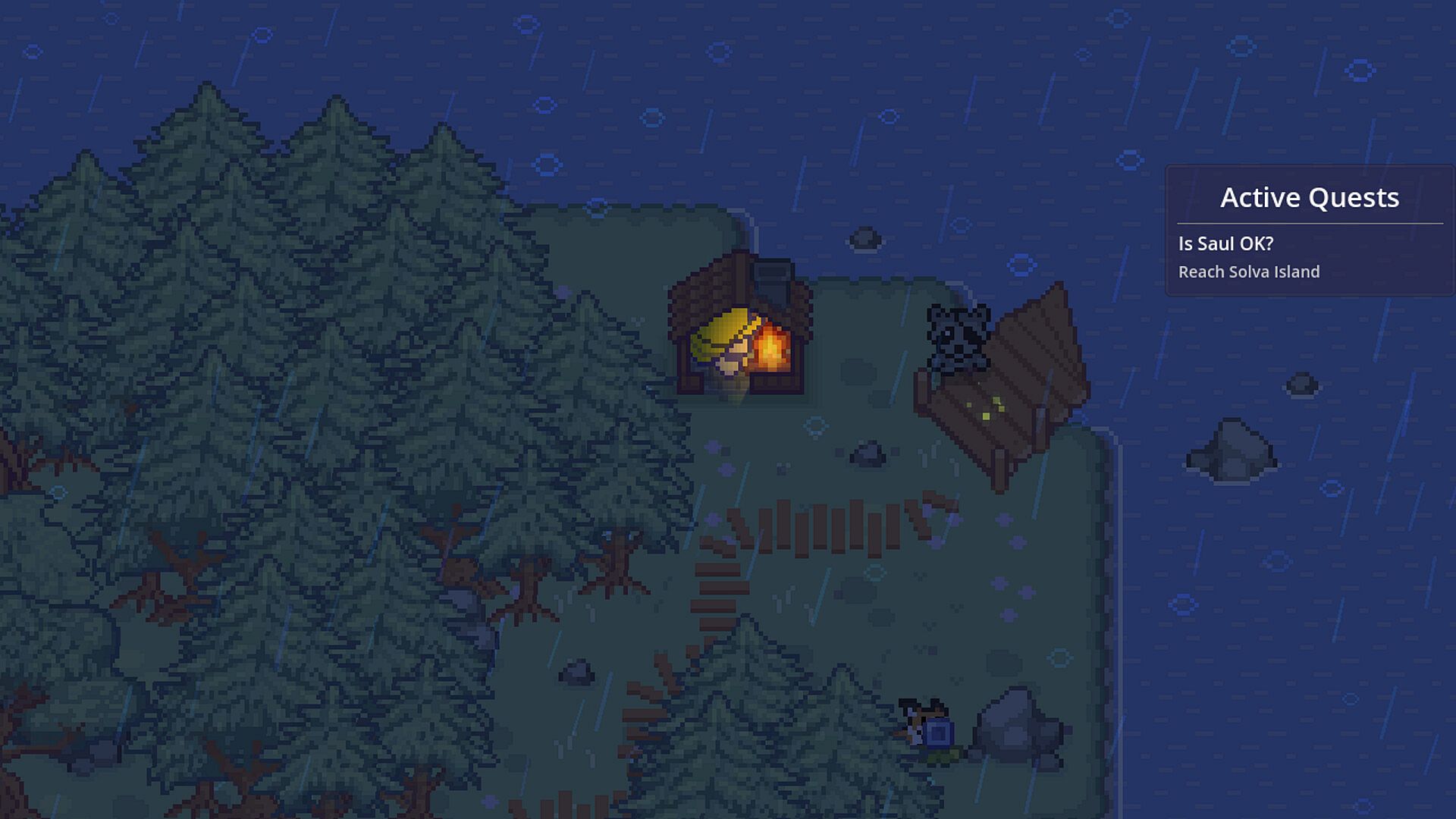 Atmospheric Exploration: Wander rain-soaked, hand-crafted pixel art islands, hearing the storm's howl above and every splashy step below. Or tune in to cozy lo-fi beats as you journey.