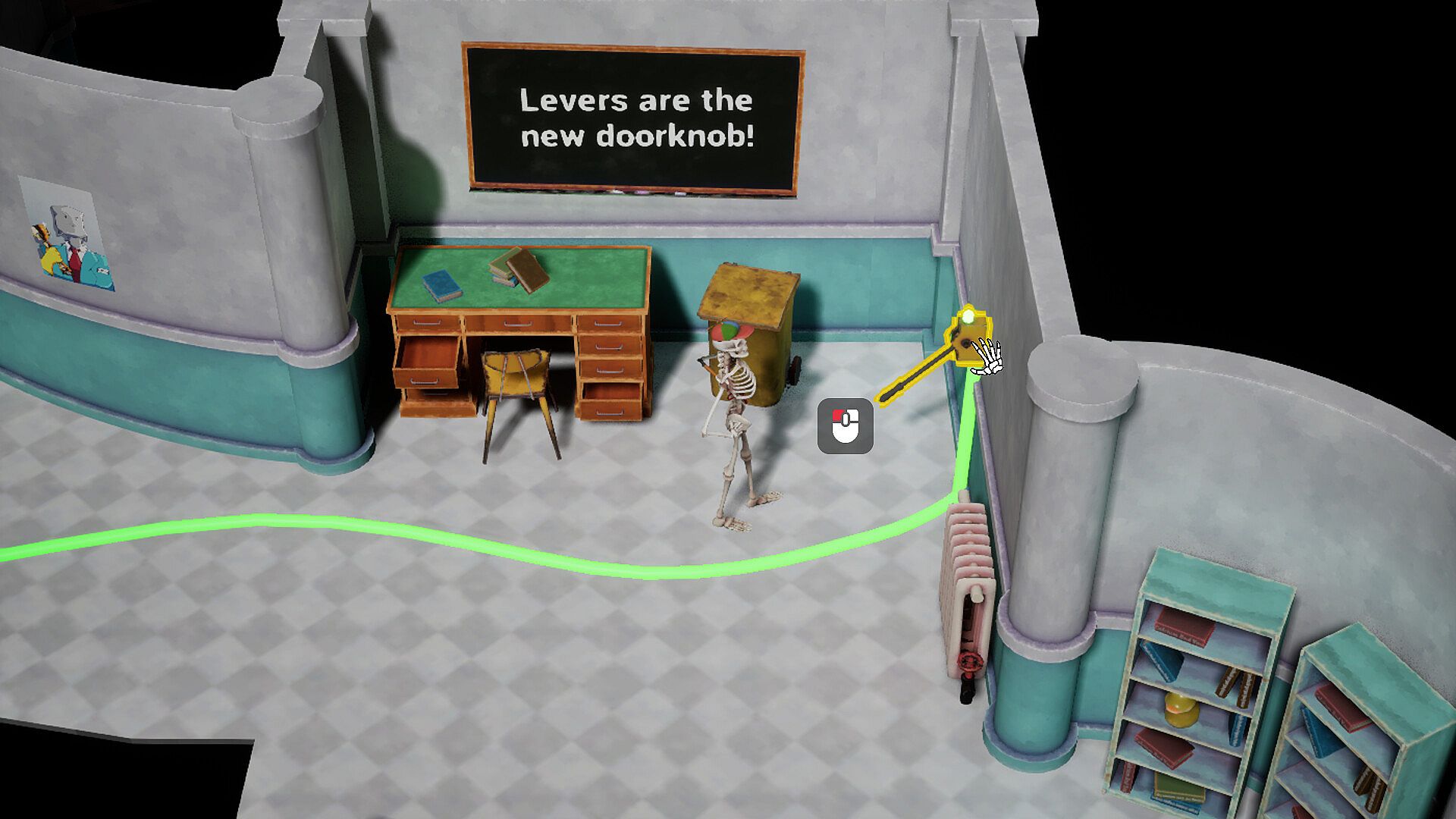 You are a part of the Mobile Milk Brigade, a group of anarchistic skeletons looking for hip new sources of calcium. Your journey has led you to "the Hospital", where Craig the great inventor and famous skeleton denier has been living in recluse for many years.