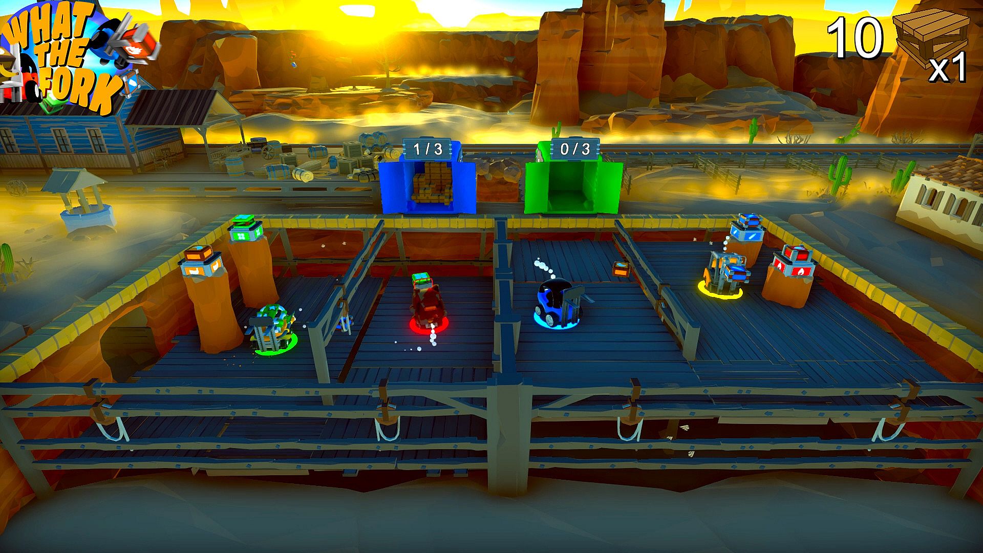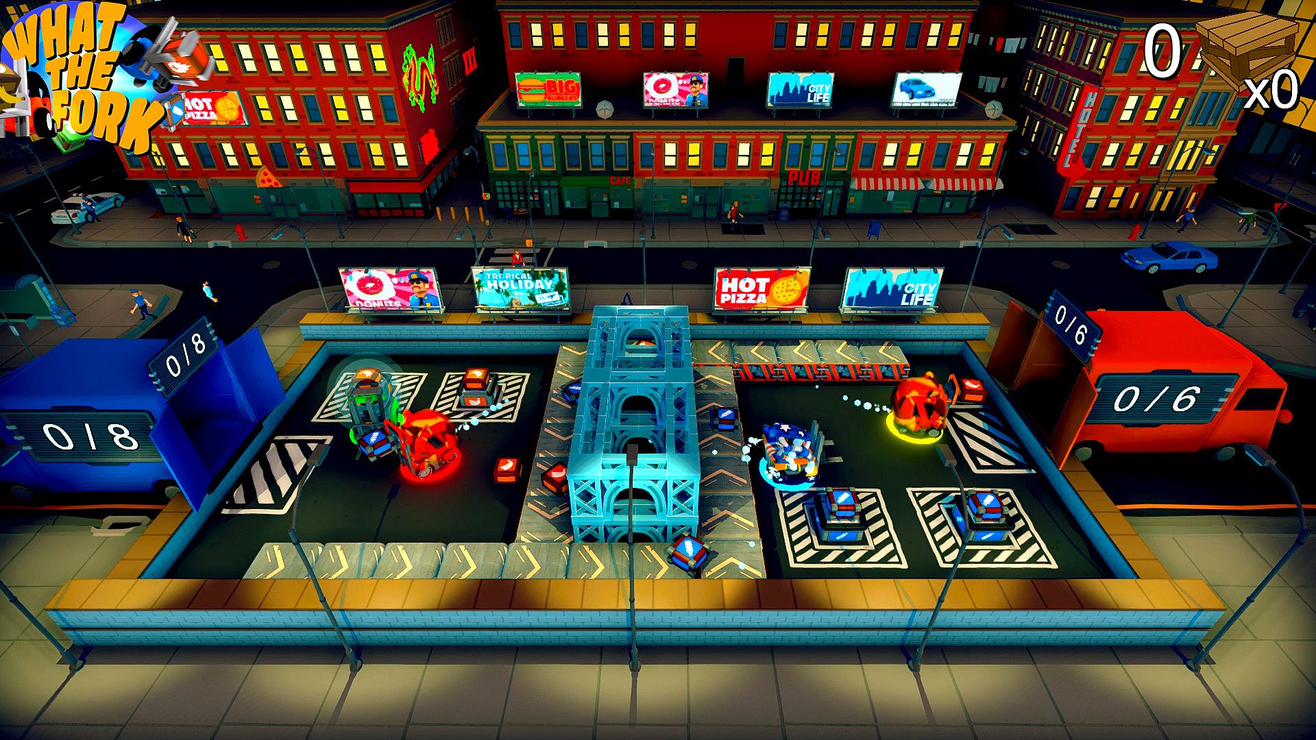What The Fork - the best use of forks since dinner - is here! Jump on your forklift and face the new challenges either alone or in a classic couch co-op for up to four players. Let the electric motors roar and hit the forks!