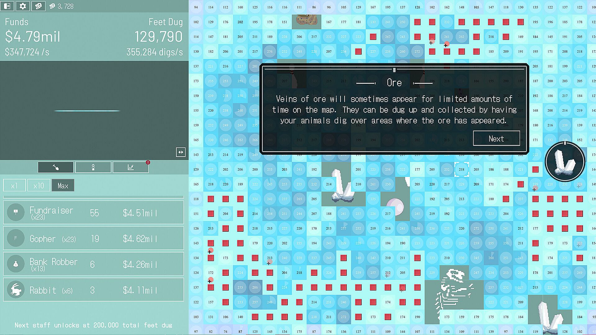 Luckily there are tons of very realistic artifacts buried underground that are just waiting to be dug up and collected! Once you have collected enough artifacts, the Government will let you apply for a new permit, and you'll be able to start digging a fresh hole with productivity increases to your animals and upgrades.