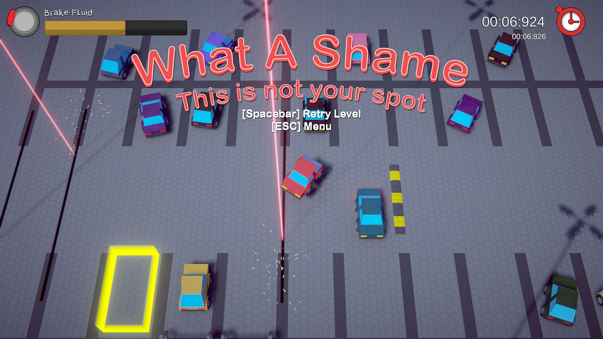 Where is my parking spot!?: Drive around parking lots to find your special spot, race against the clock or set a record. You MUST get to that special parking spot! Also... when you use the brakes it also leaks brake fluid? That's normal right?