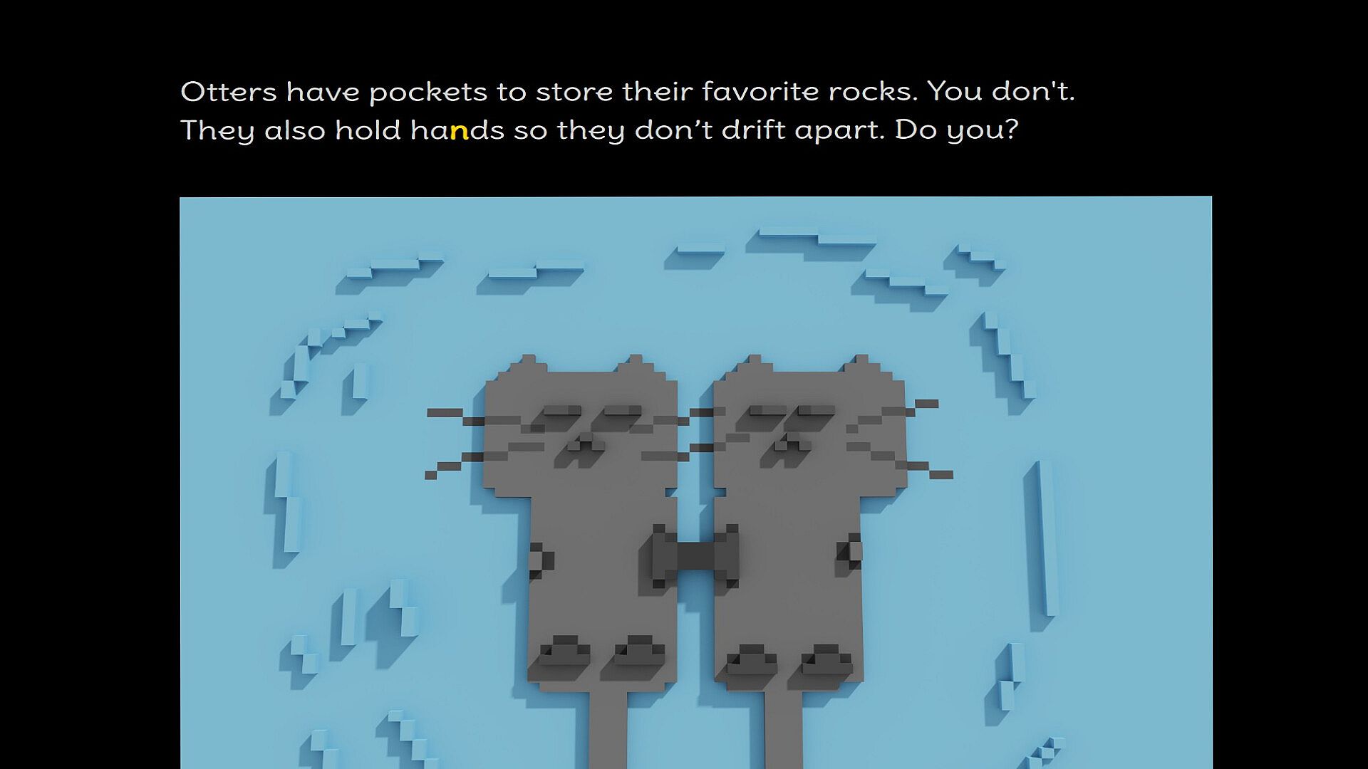 "Where Is My Pocket?" is an interactive story that humorously explores the strange and surprisingly unfair world of pocket inequality. Through playful narration, quirky characters, and colorful voxel art, the game invites you to laugh, learn, and maybe even question your wardrobe choices along the way.