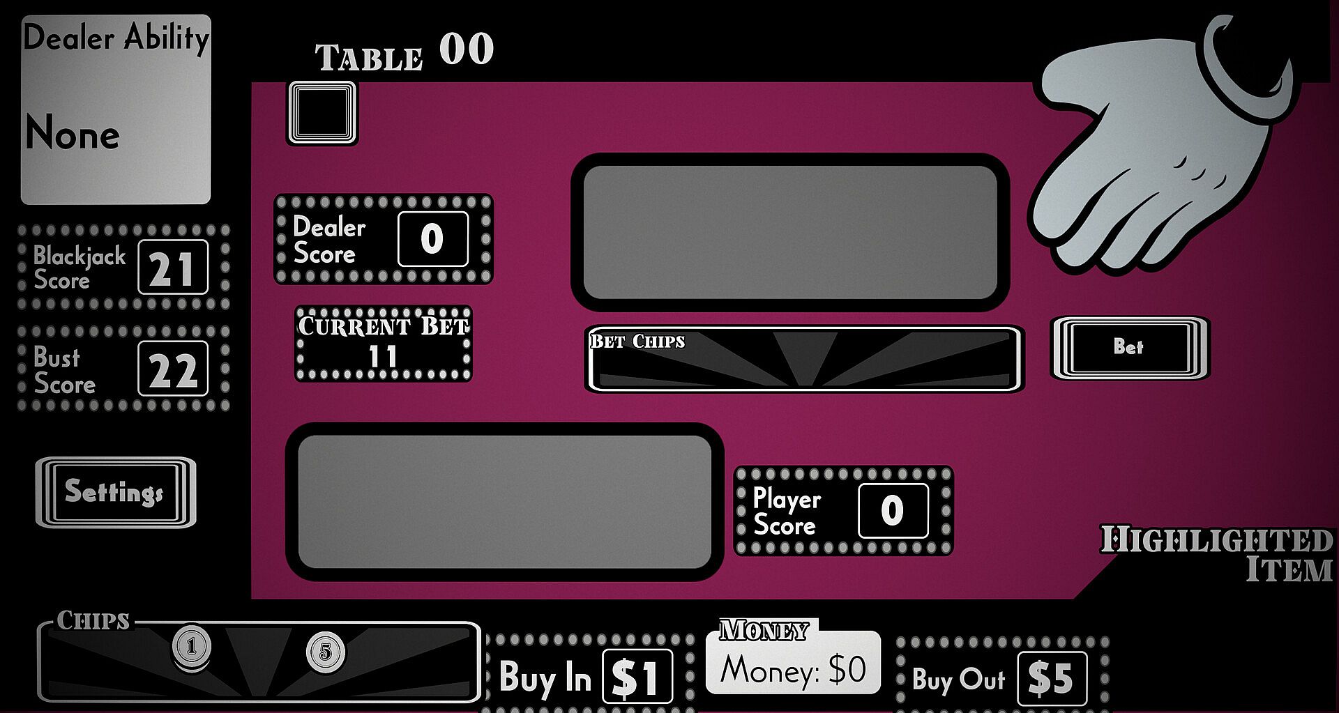 It's Balatro but blackjack and you gamble with your abilities. Do you best to over come the house with chips, cheats, and strategy.