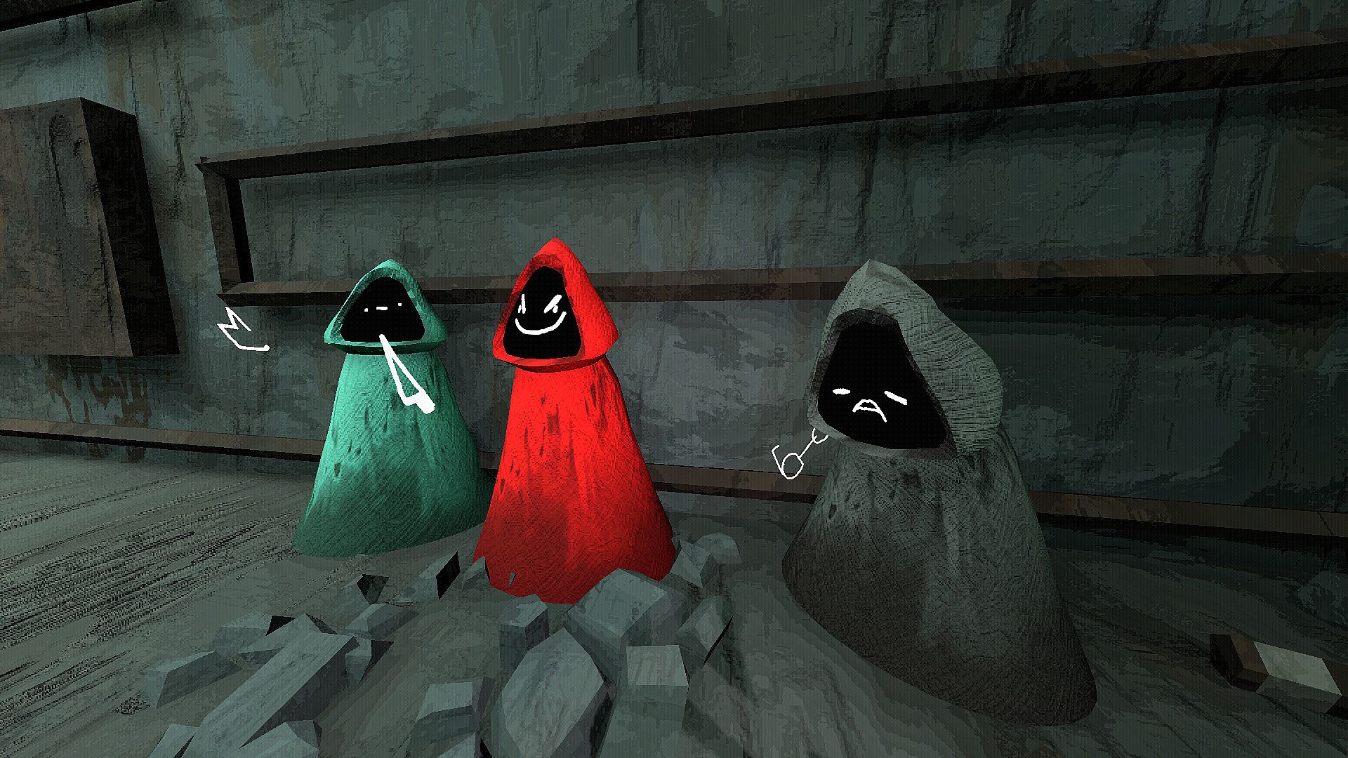 Identify forgotten artefacts to deduce their effects on you or on your friends. Draw descriptive pictures to not forget what they do or sacrifice them to go deeper into the bunkers.