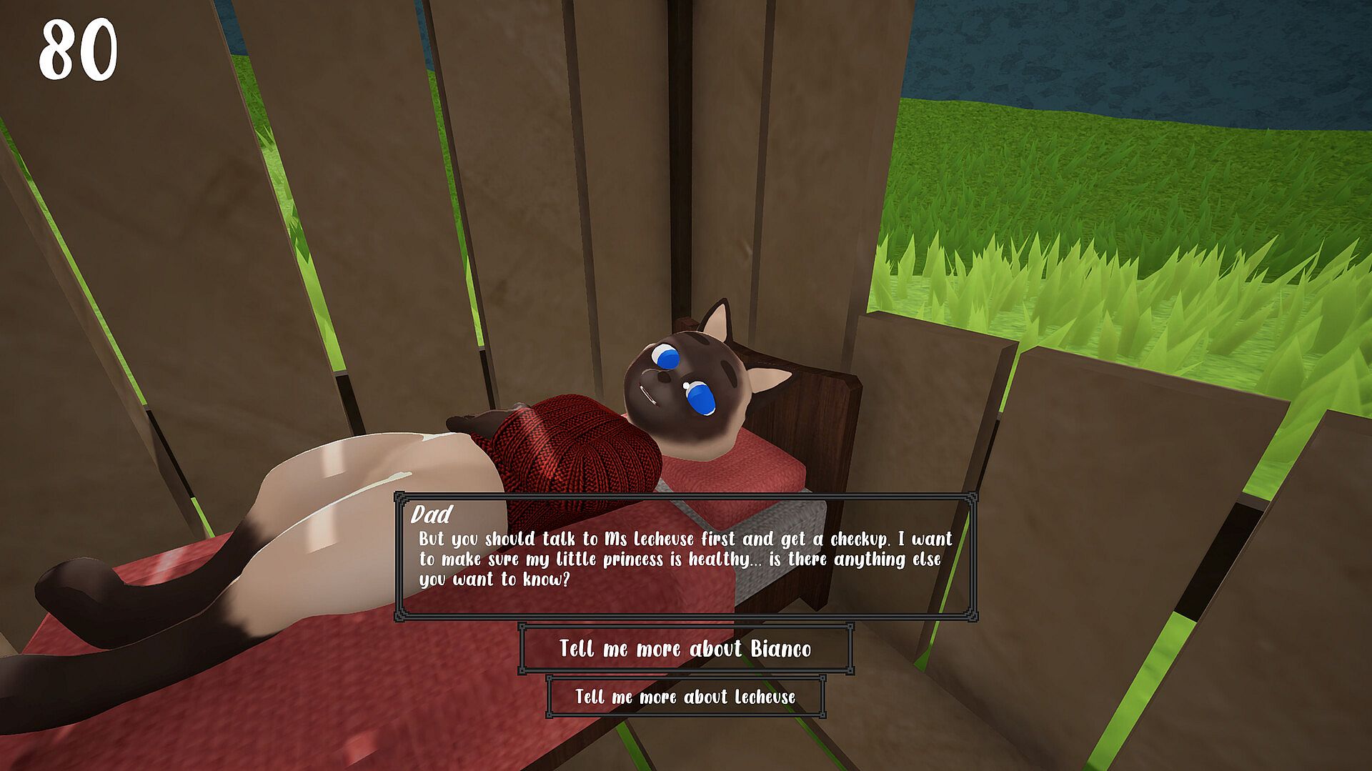Skill Levels: Whiskara features a skill level system. Right now it allows the player to increase their skill in speech, allowing dialogue with some characters to unlock alternate ways to do quests.