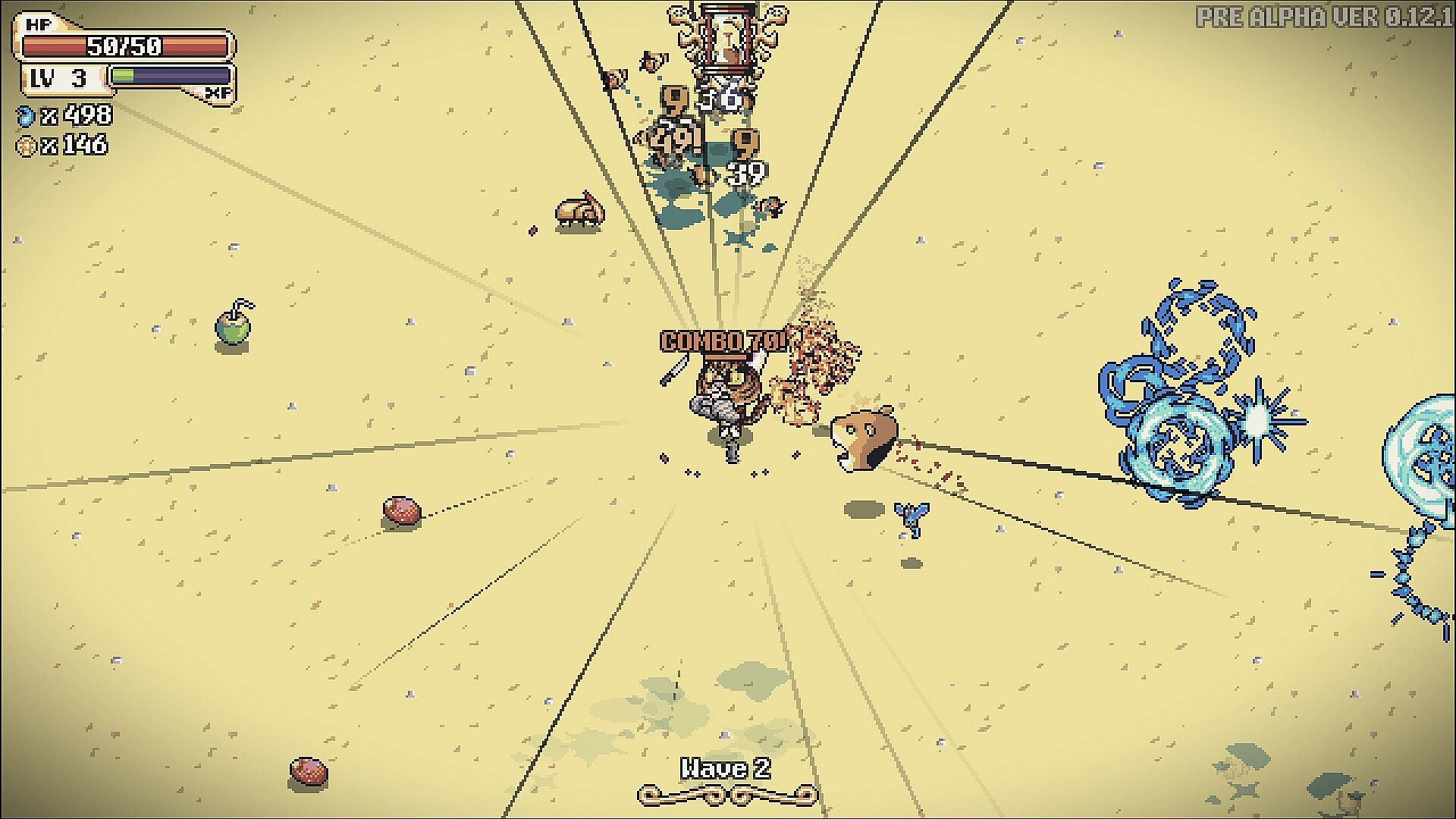 Whiskers In The Sand plays like a mix of Brotato and Vampire Survivors, except you're a divine-backed cat in a desert full of undead maniacs. Survive short, intense waves; buy upgrades between rounds; build hilarious (or disastrous) item combos; and pray Sekhmet's blessing doesn't turn into a cosmic prank.