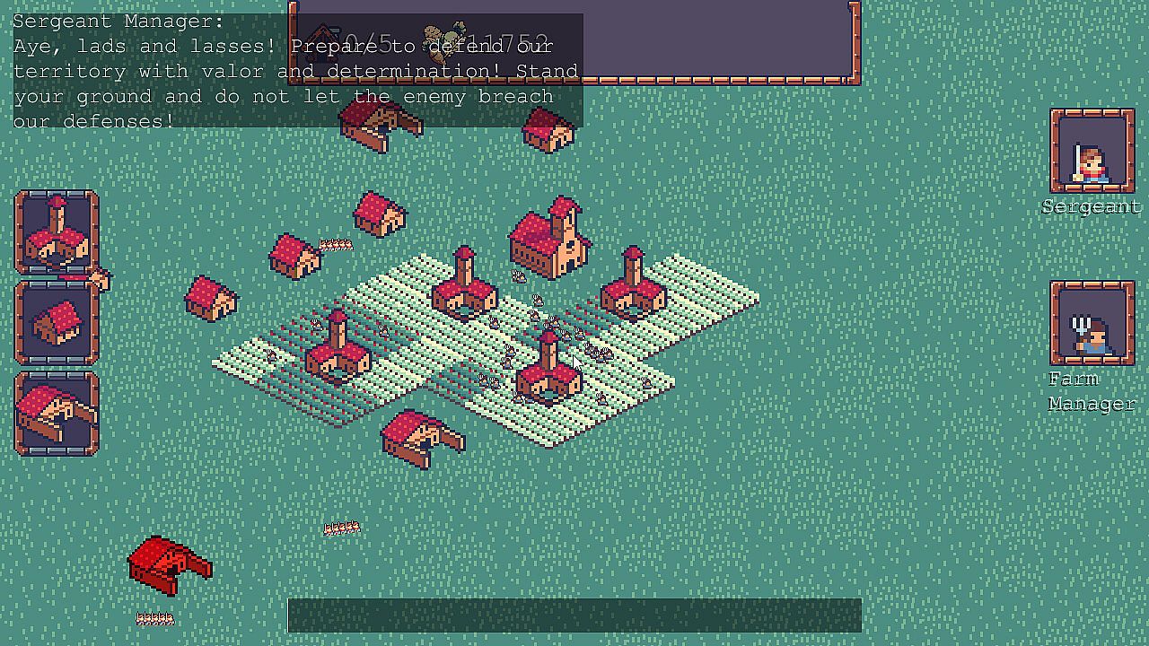 Tell your managers to gather resources, construct structures, or defend the village. You'll at times need to calm your managers as civil war can break out!
