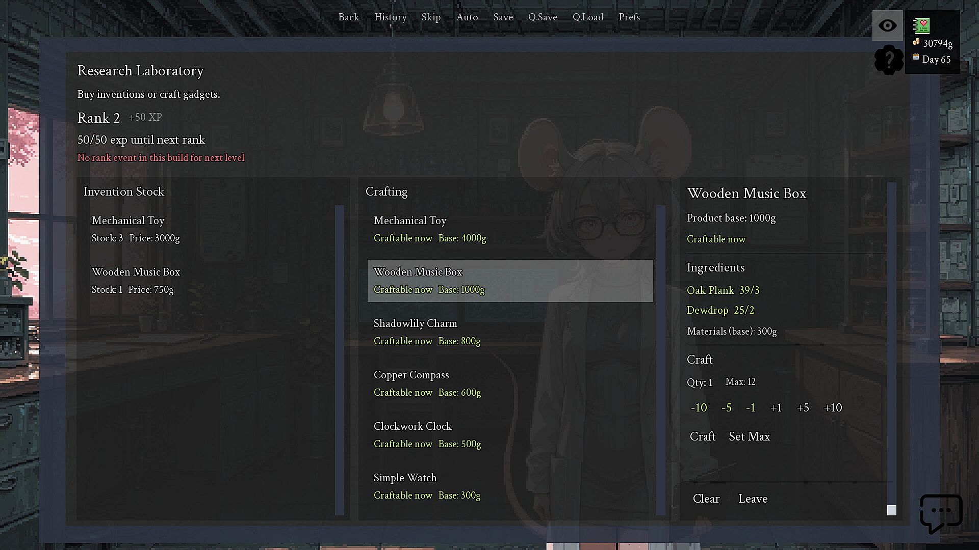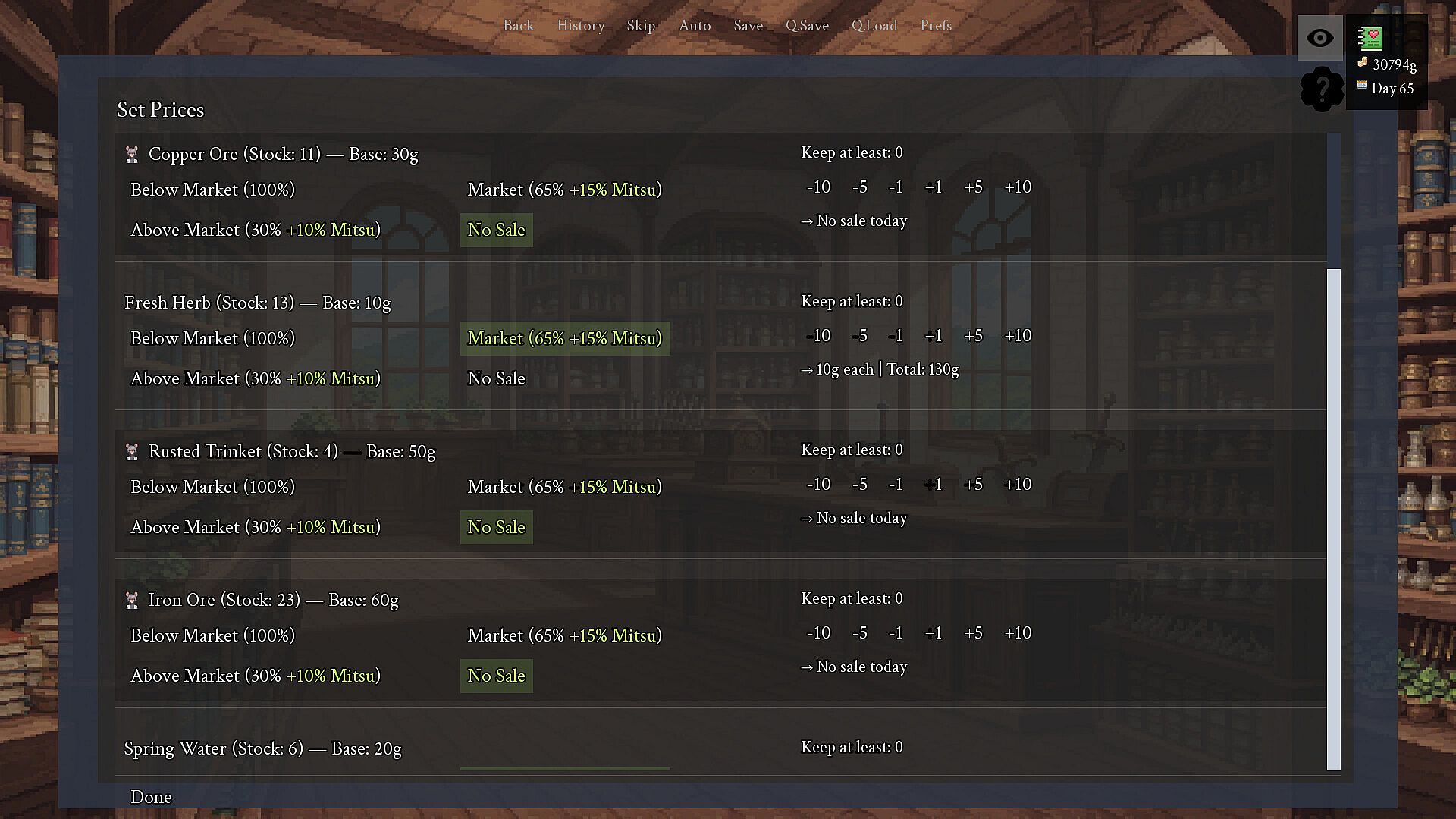 • Before Hours – Set prices, prepare inventory, and see the results of yesterday's scavenges/expeditions.
