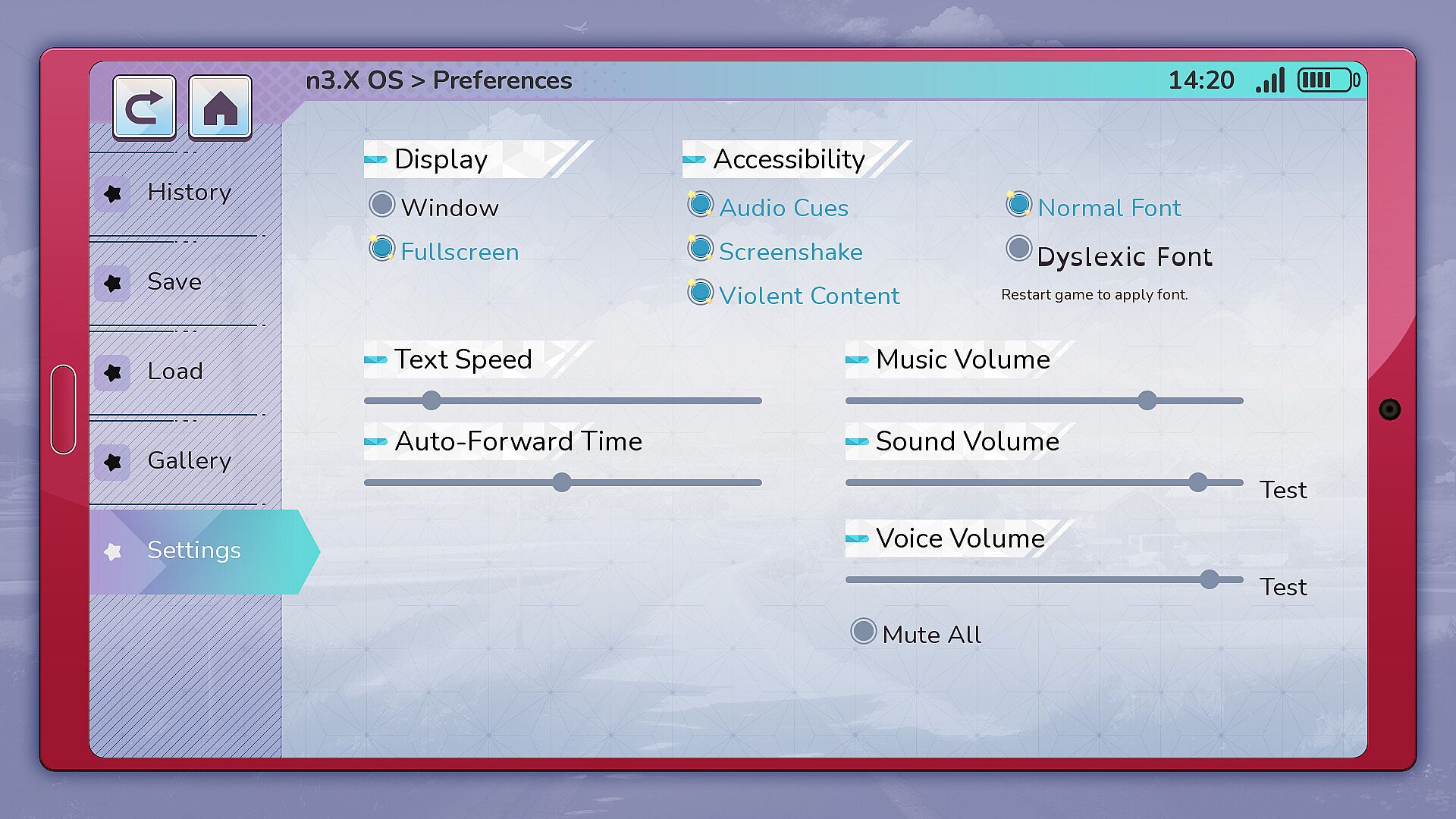 Accessibility: Dyslexic font for the text; Visual SFX text and audio/music cues; Turn off shake screen and constant animated assets.