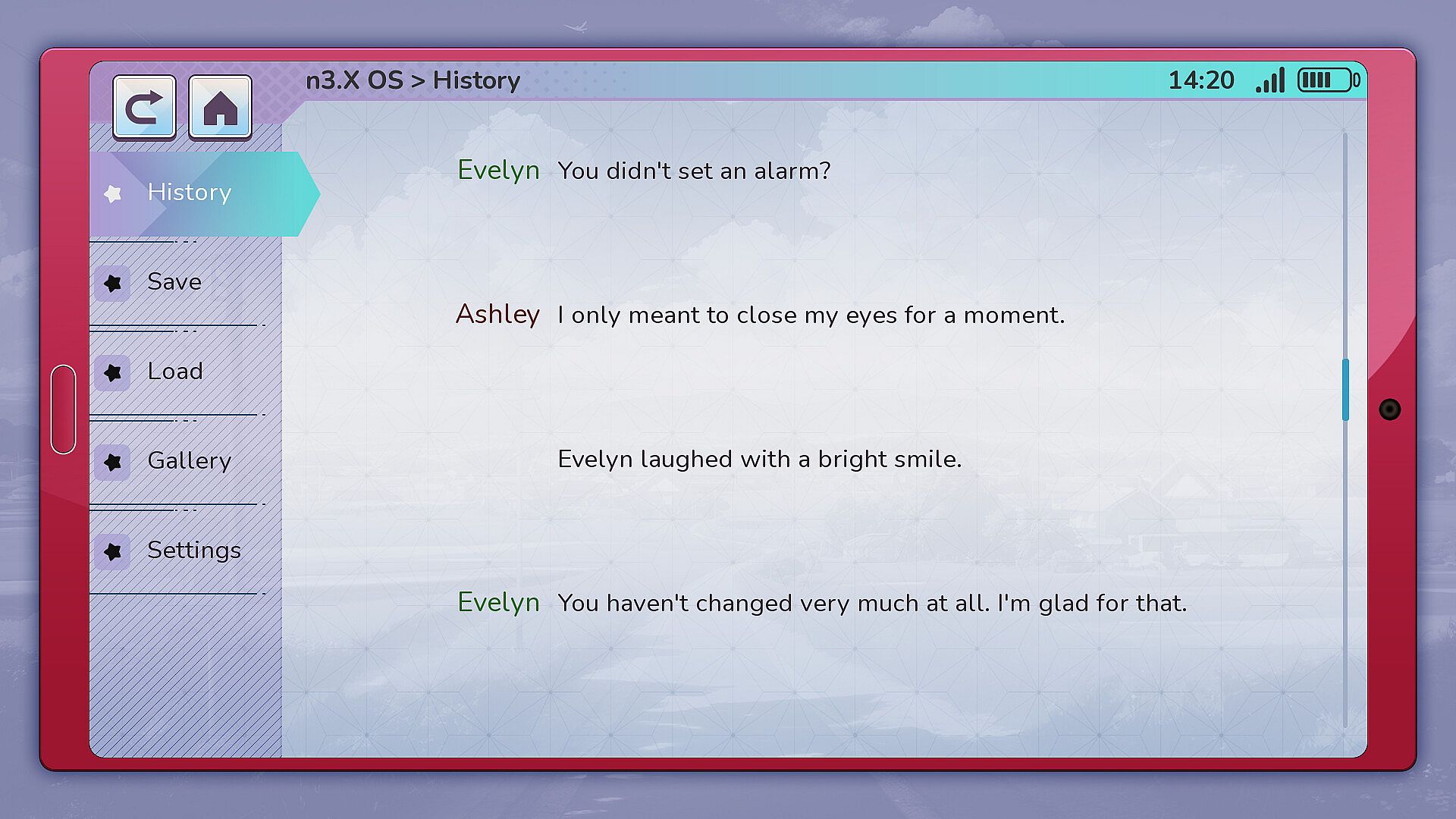 Evelyn, your childhood friend, and the one most unchanged by time. Evelyn offers warmth, familiarity, and a sense of safety that feels almost too intact. She remembers things others don’t mention, and sometimes reacts as if she’s already heard your answers. Being around her feels comforting… until it doesn’t.