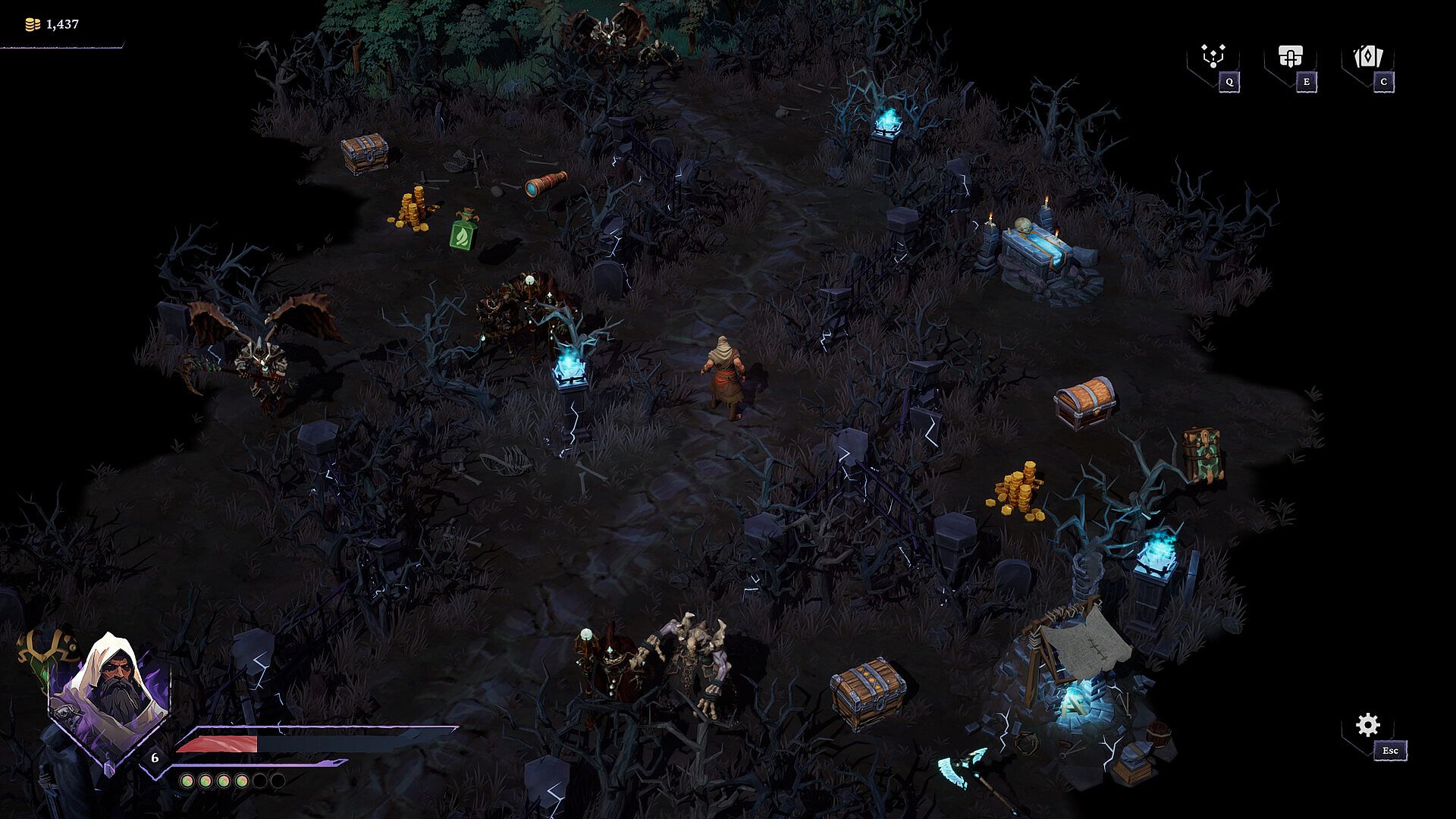 Choose a starting biome area and reveal fog of war to discover countless objects and treasures. Be sure to plan your path through Elenrod wisely, collecting only what fits your build, and save your strengths for the biome guards and final bosses.