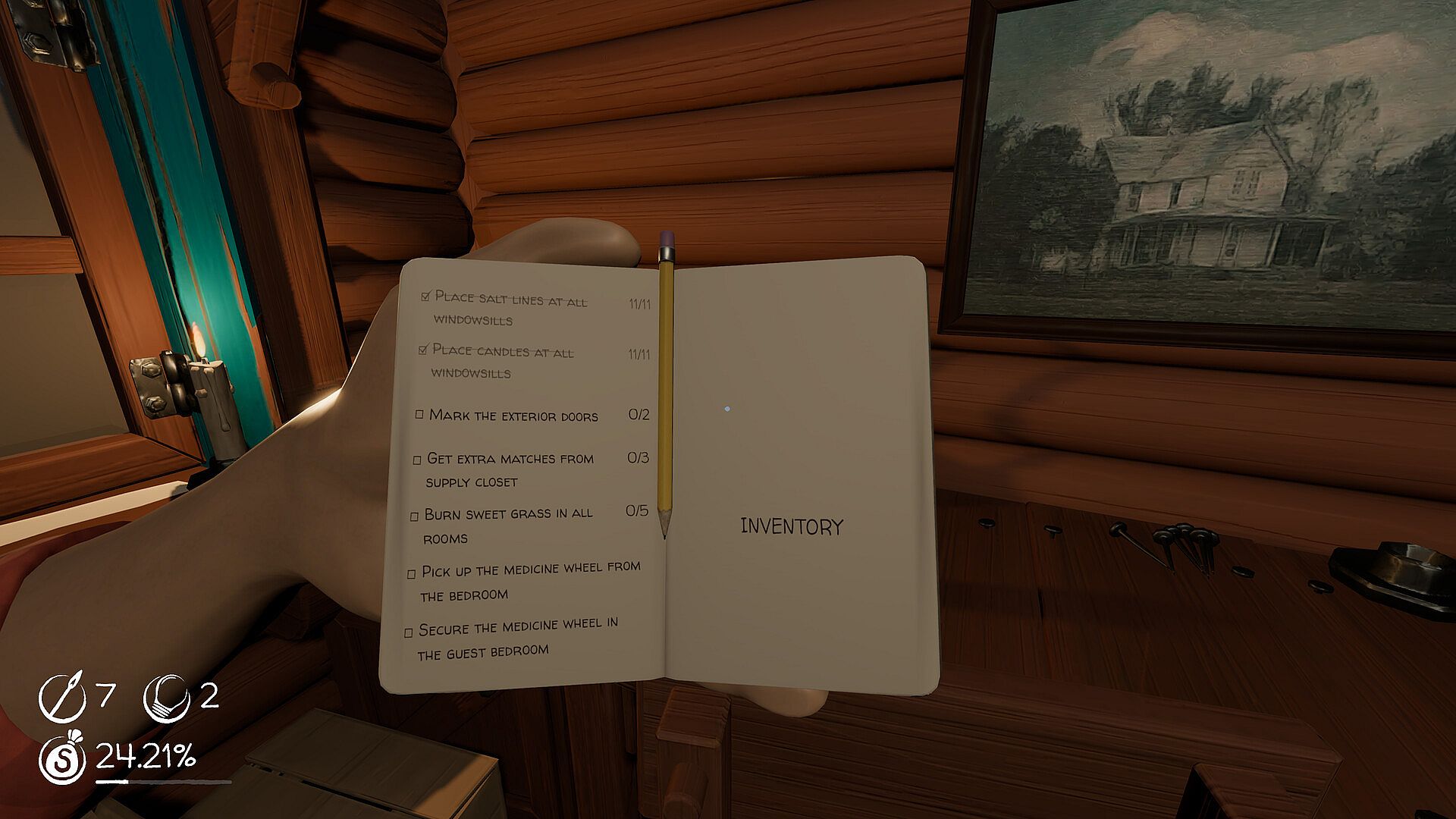 Complete Your Tasks - A local priest has answered the call to help you get rid of the beast for good. Follow his instructions for each night to prepare a ritual to trap the beast, or choose to go it alone and focus on your survival through the night.