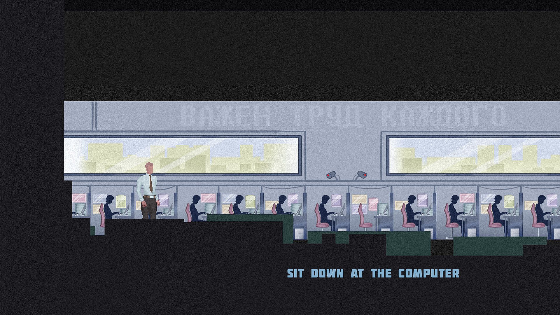 In this adventure game in the genre of walking simulator, there are no shootouts, jumping on platforms, fighting monsters, and saving the world. Or at least a princess. There is a daily rise at 6 am, morning coffee, and the way to the office by bus.
