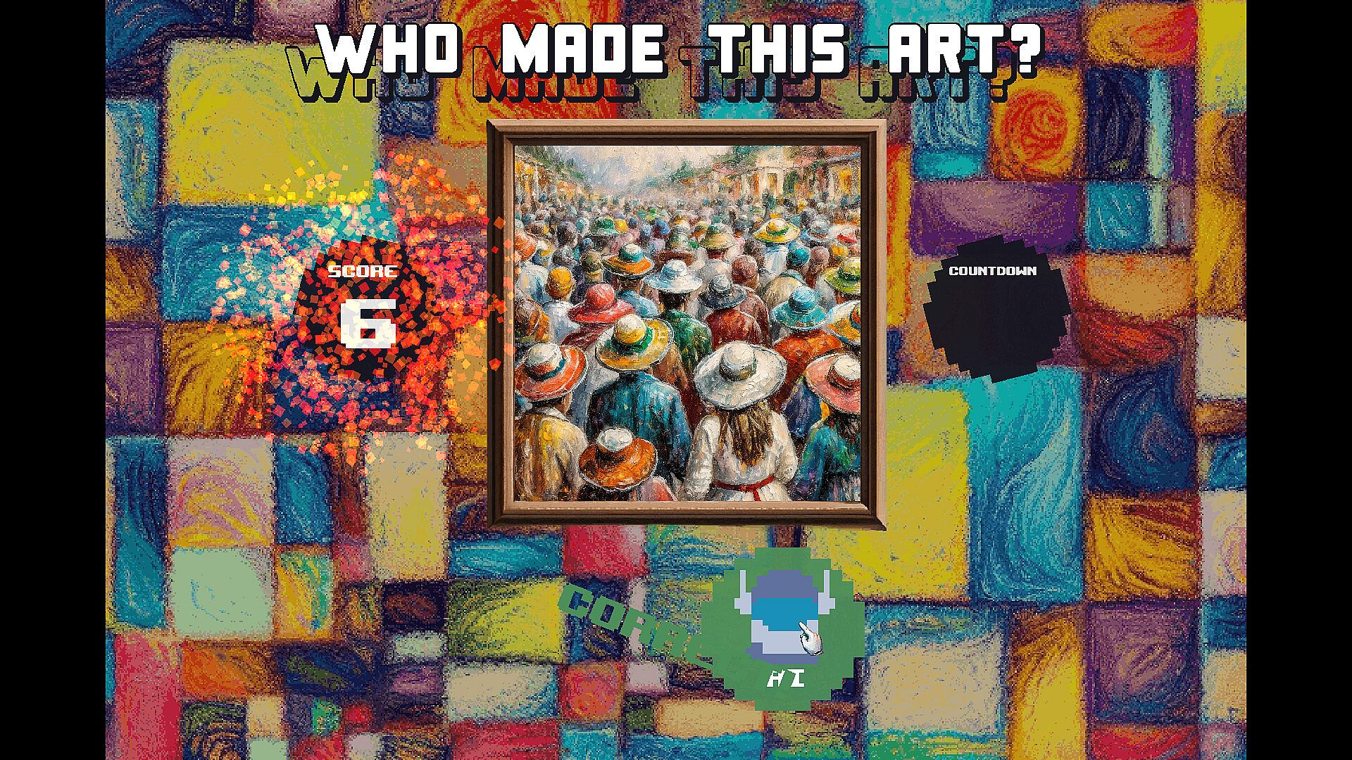 Dive into 'Who made this art? Human or AI' – a 2D trivia game where you identify the creator of each masterpiece. Is it a human touch or the brilliance of artificial intelligence? Decide solo or involve your Twitch chat. Unravel the mystery behind each piece – who's the true artist?