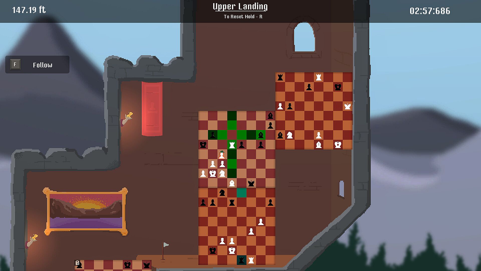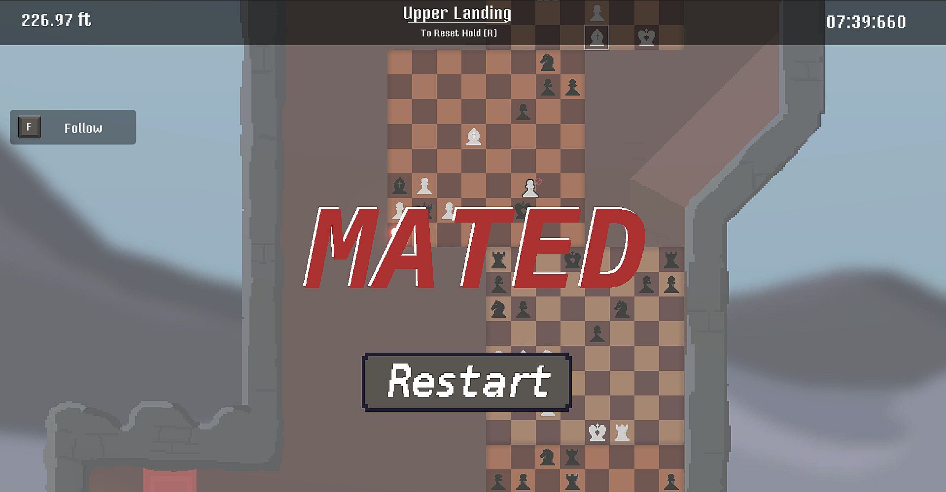 It's not only about your platforming skill either. One blunder in any of the chess games could send you back as well!