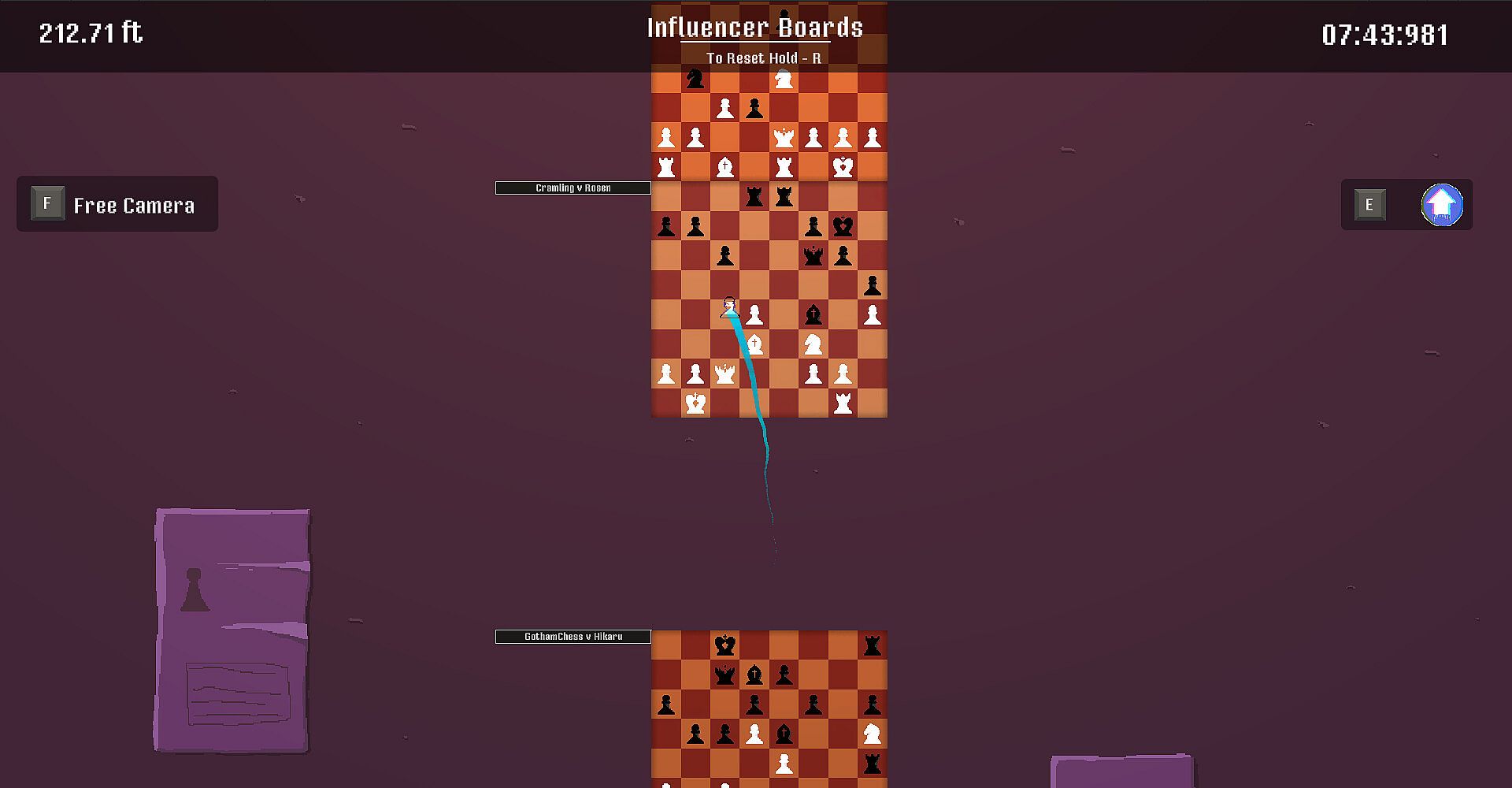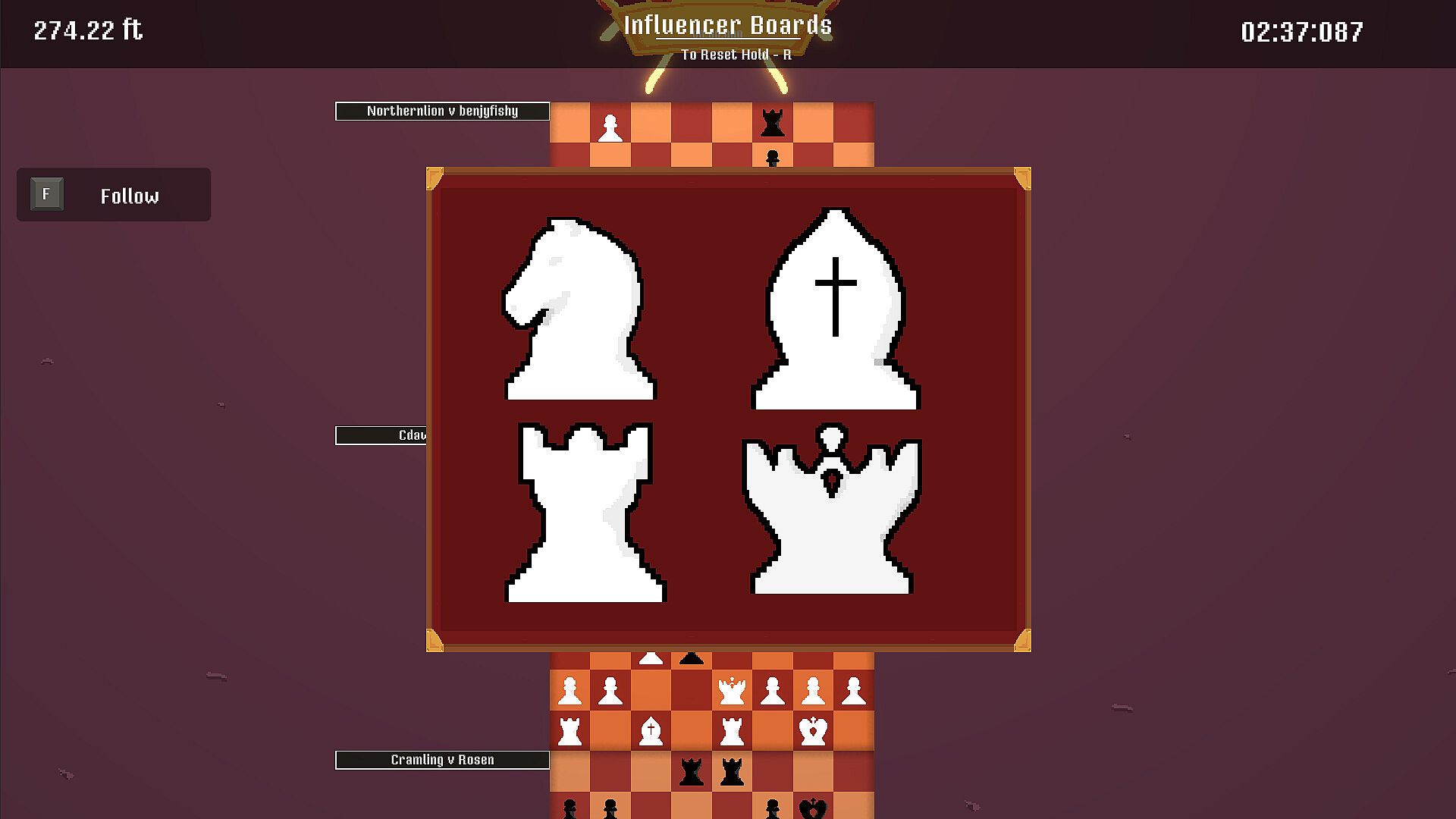 This is the main game mode in Who Takes the Crown? Start from the bottom of the map and make your way very high up to claim the crown. The map contains many chess games for you to navigate through. There are varying difficulties for all kinds of skill levels. The chess games are played against the Stockfish chess engine so make sure to have your thinking cap on!