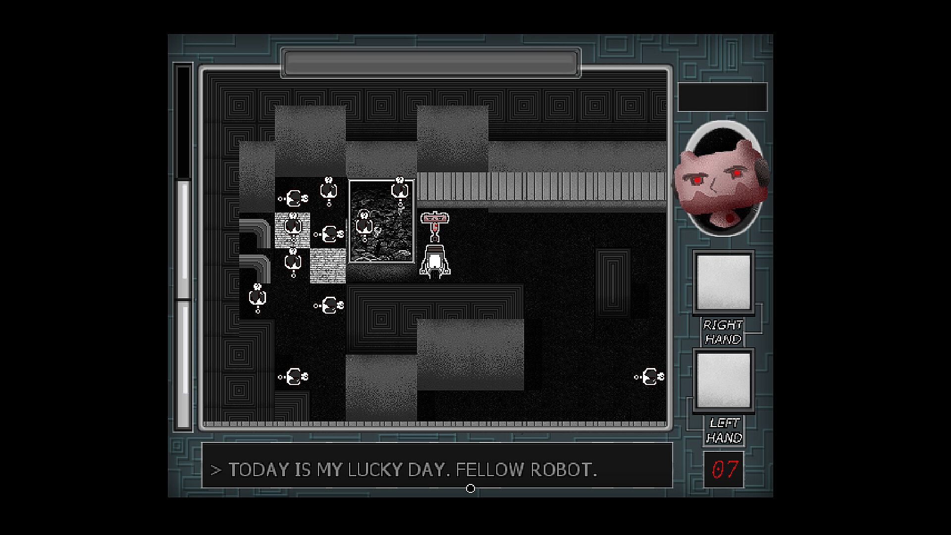 Follow the story while fighting with creatures beyond the comprehension of your little robot mind in this randomized
