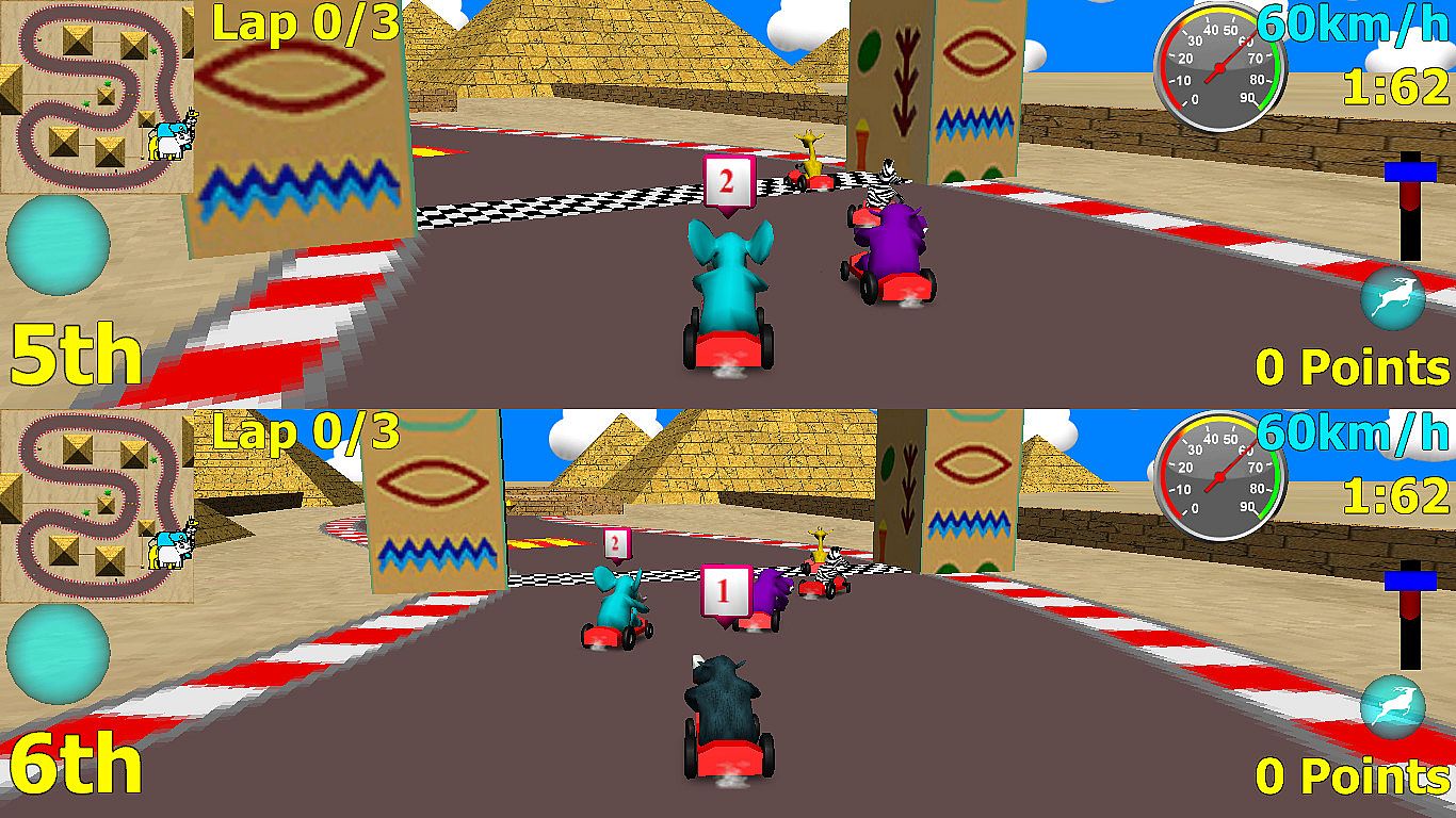 Wild Animal Racing is an exciting go-kart simulation game with a twist. Play as an elephant, a lion, a zebra, a giraffe, a rhino or a hippo! Play against the other animals or against a friend on the same computer with the split-screen mode! Or invite Steam friends in the multiplayer mode!As the game progresses you will gain access to exclusive animations that may reveal the secret of the strange animal monsters. Where did they come from and where are they going? But not only that you can take control of the animals and race them around the tracks!