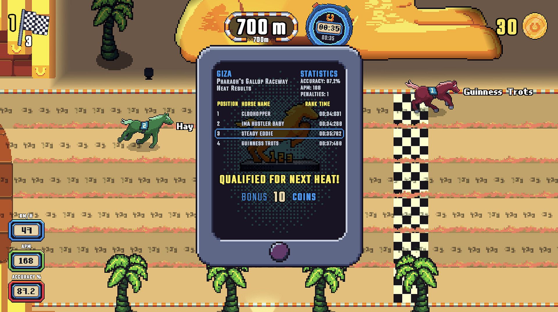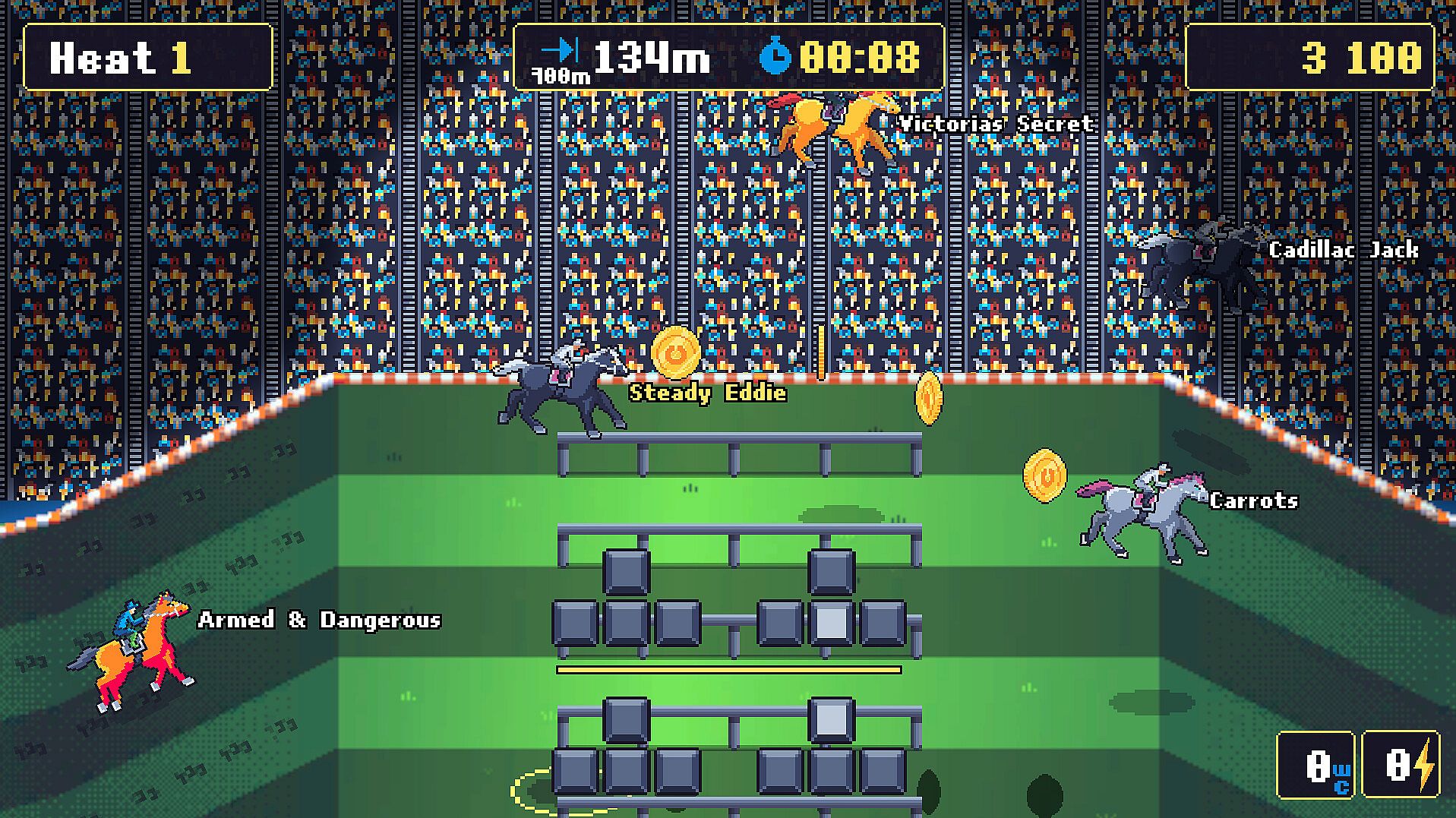 Wild Horse Racing is a fast-paced arcade horse racing game where timing is everything! Master control patterns from easy to godlike difficulty, leap over big jumps, and race through vibrant tracks around the world. Climb the leagues, manage your horse, and gallop from bronze to gold!