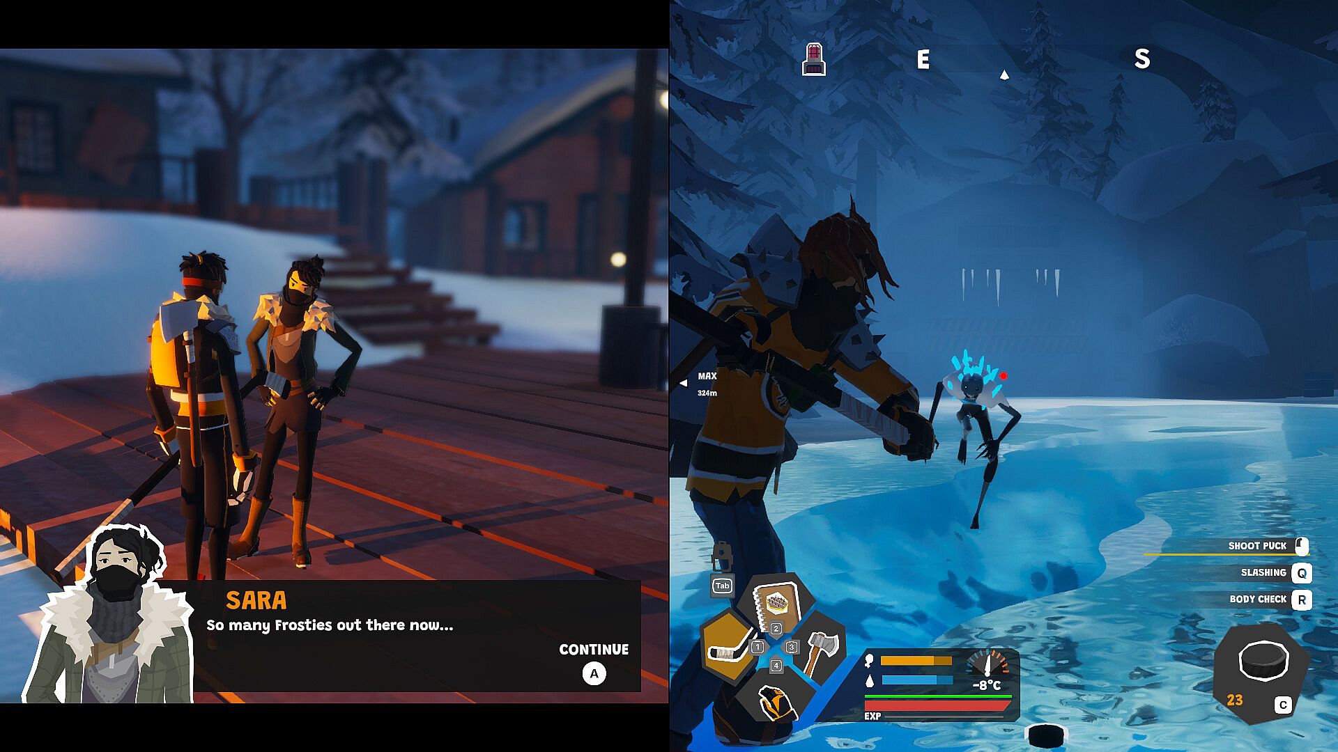 Get ready for the ultimate face off! Play couch co-op or solo as Max and Finley, two teens from a small hockey town as they take on a frozen wasteland. It's getting colder every day and frost zombies are everywhere. Your only hope? Keep the town's furnaces running and defend them against the frosty hordes!