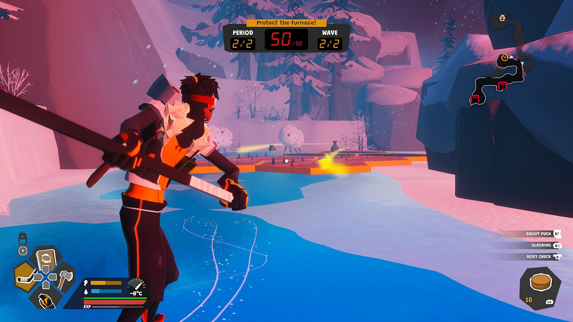 • Survive and Resource Gather- It's colder than a rink in January out there and only getting colder. Stay toasty and replenish your health while you gather resources for yourself and head to the next furnace.