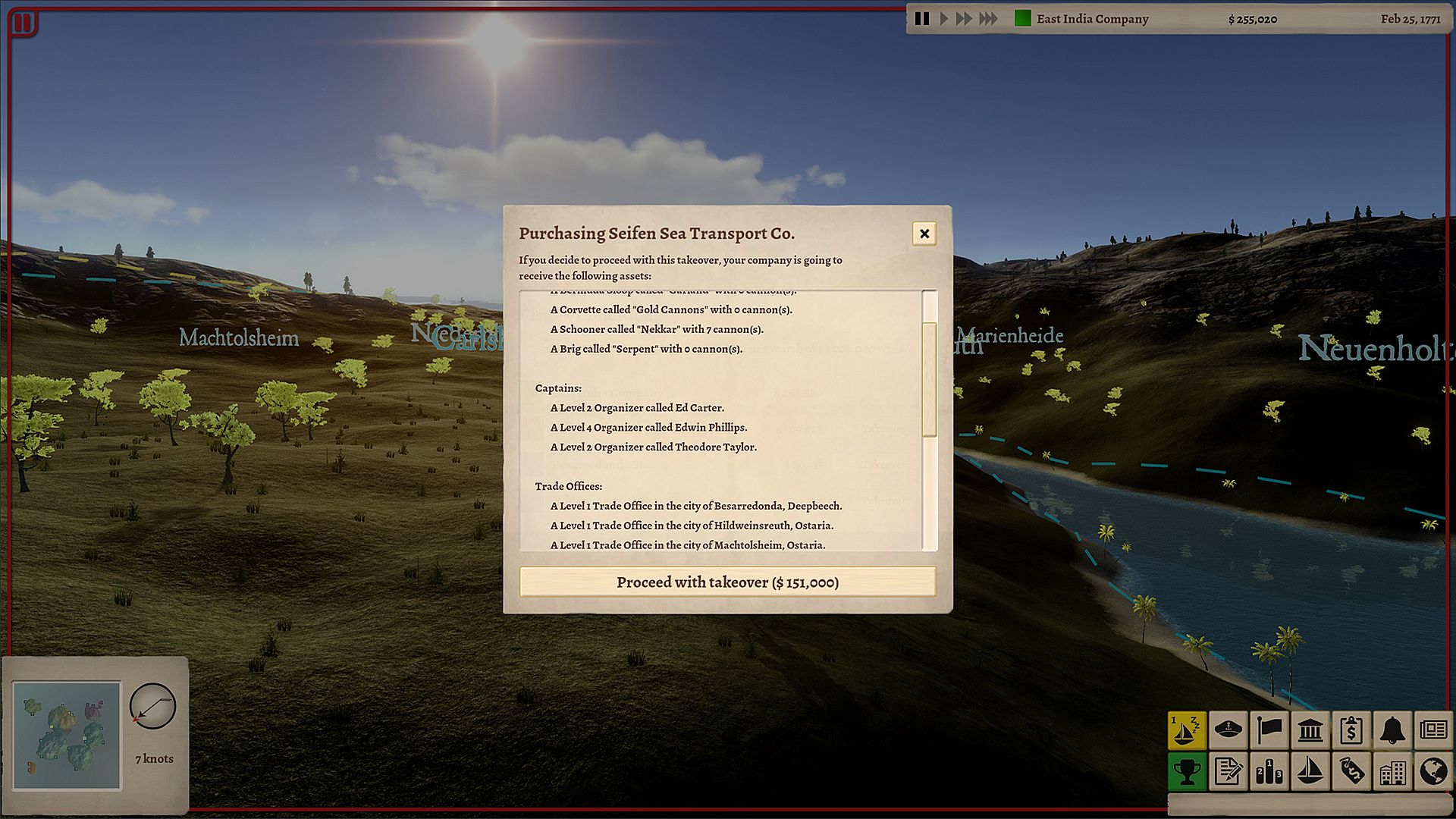 • Improve your ships' stats by hiring experienced captains or purchasing upgrades.