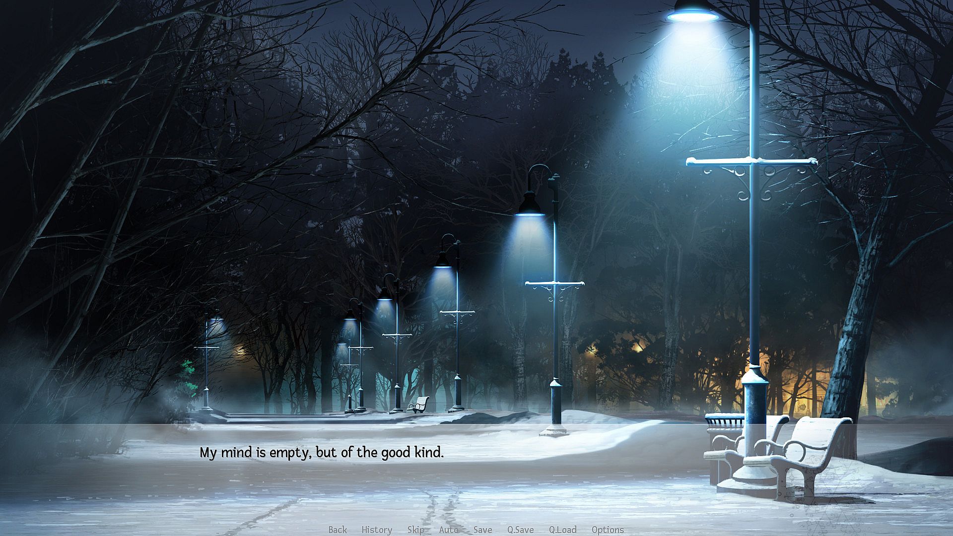 • Winter's Symphonies is a visual novel: a text-based game with no other gameplay than clicking to proceed with the story and making choices that affect the outcome of the story