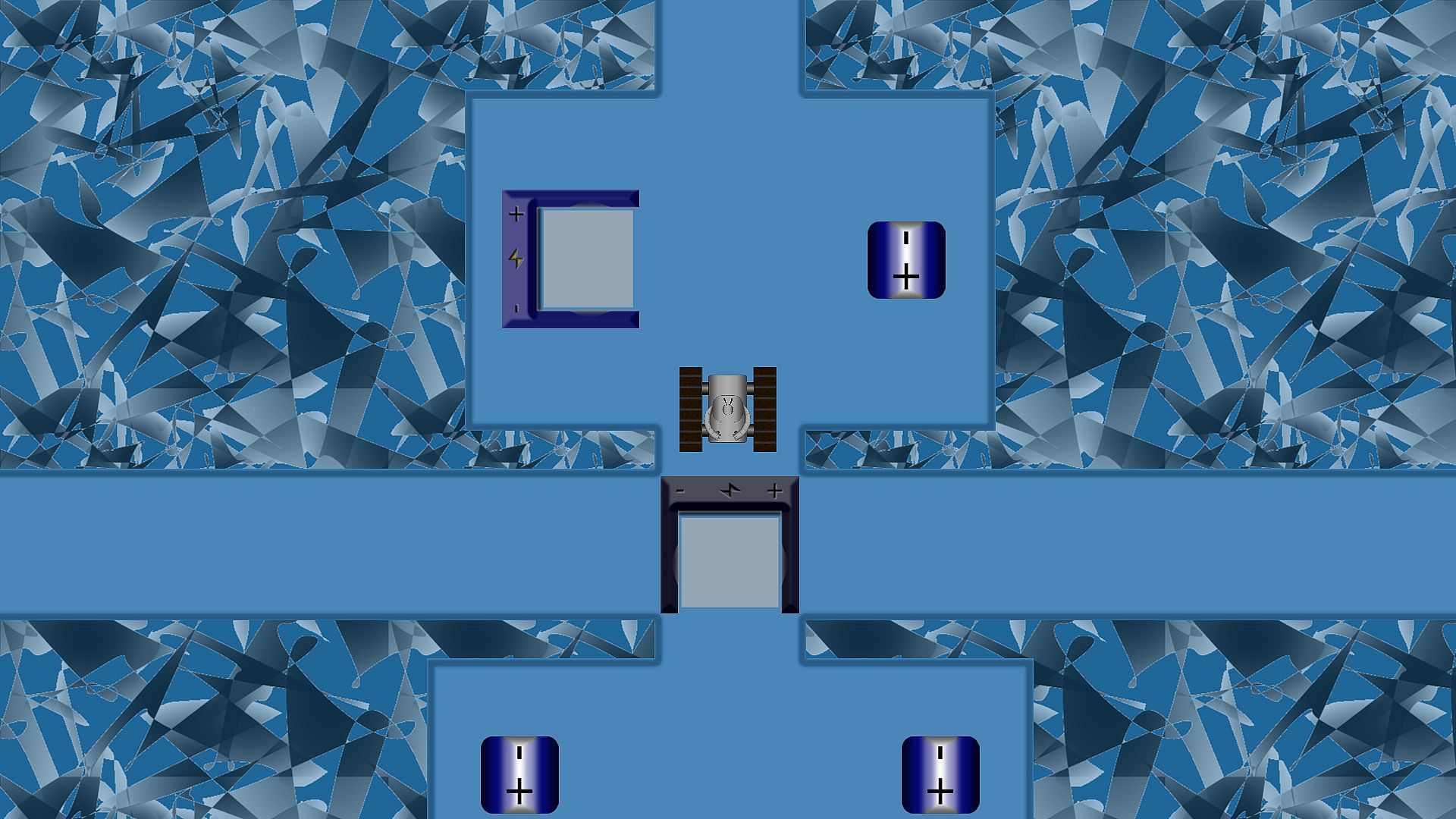 • Move batteries to their respective terminals to open the gates. Watch out for the correct polarity!
