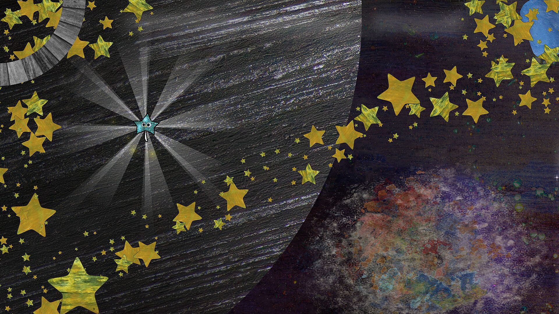 Journey in and around hand-painted textures and experience light space exploration as you zoom, dash, and perhaps even giggle your way through a specific number of areas containing our delicious space machinations. How many areas, you ask? We forget!