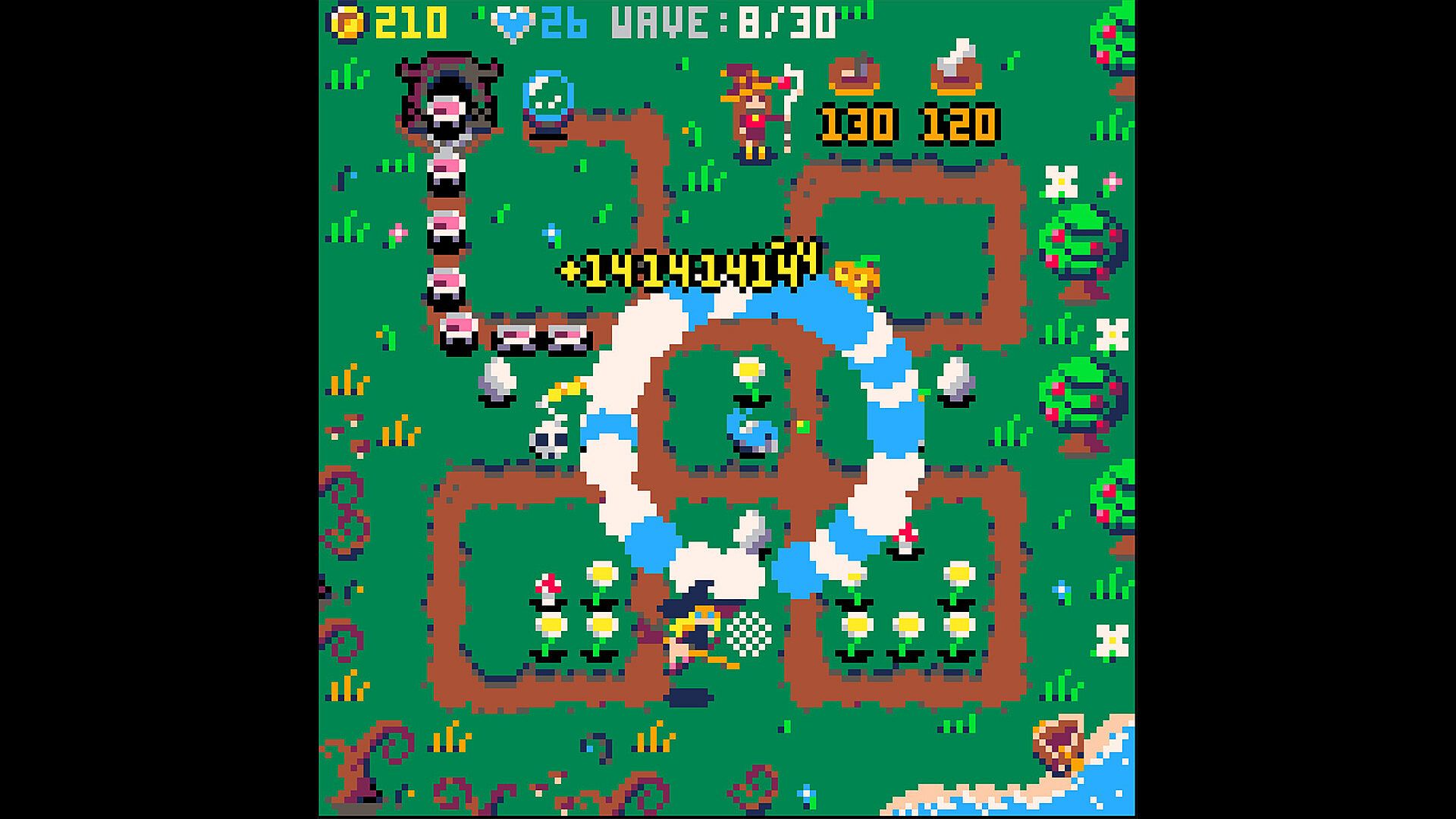 Open the ancient portal and protect your crystal from waves of mysterious enemies in this microgame tower defense title. Play as an apprentice witch whose random magic demands clever strategy to turn luck into victory. Summon a random tower for 100 coins with Z or left mouse click, or hold X and right mouse click to sell one. Deep mechanics shine through six tower types-Water, Poison, Potions, Birds, Horrors-featuring 30 unique towers with powerful abilities. Face dozens of unique enemies, intense bosses, bonus quests, and a market for extra gold, plus roguelike perks each wave that deliver curses or blessings. This cute, crisp 128x128 resolution strategy game runs on low-end devices and rewards players who master its varied tower defense approaches.