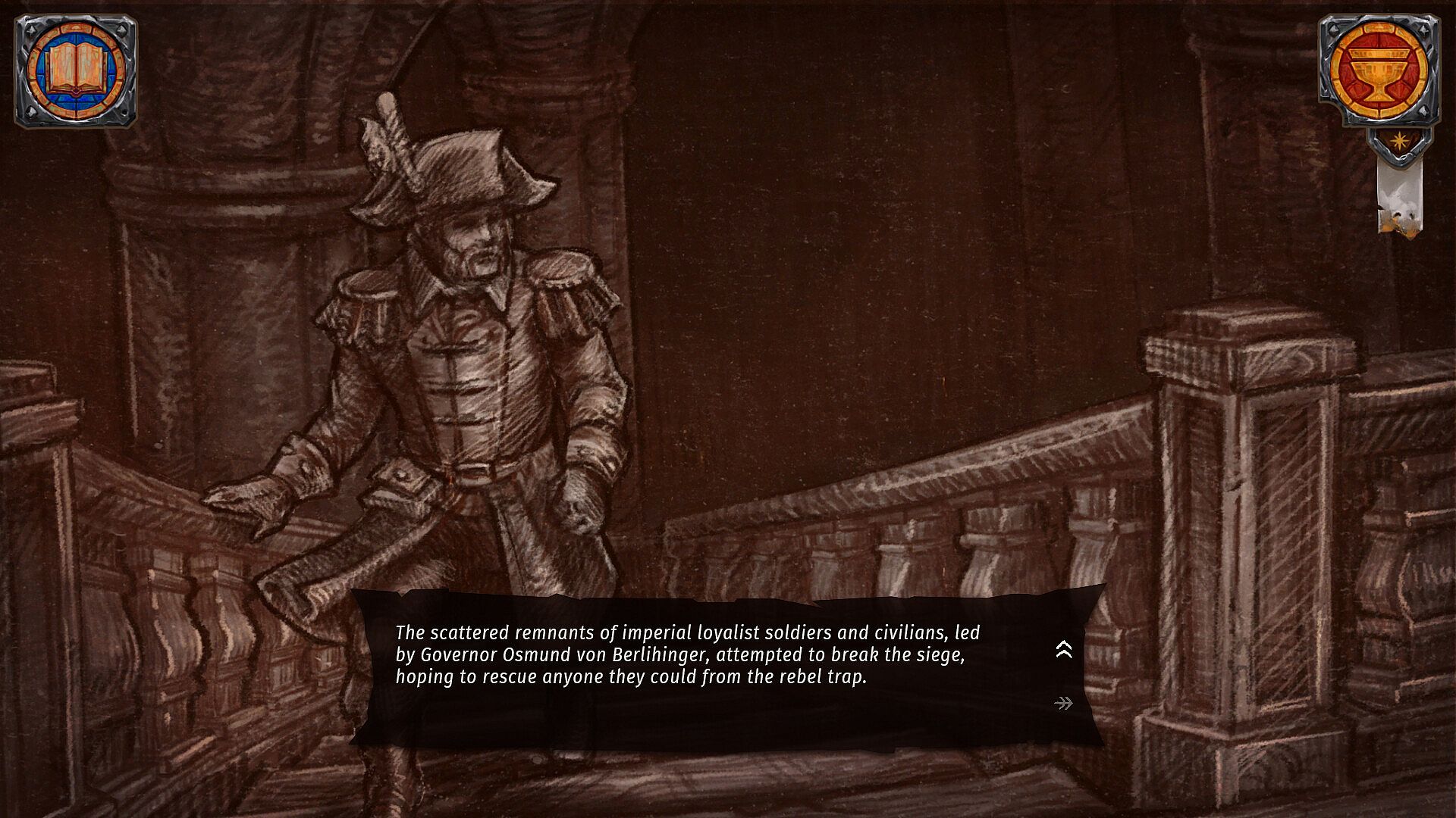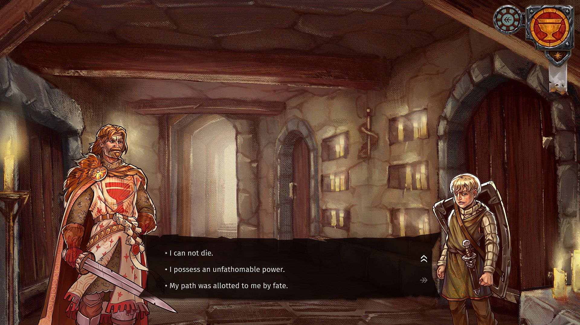 The Master is destined to partake in the key events of this ill-fated siege of the abbey over and over again: to seek the missing information, walk off established paths to find new ones... And die. But death is followed by an awakening and another chance.