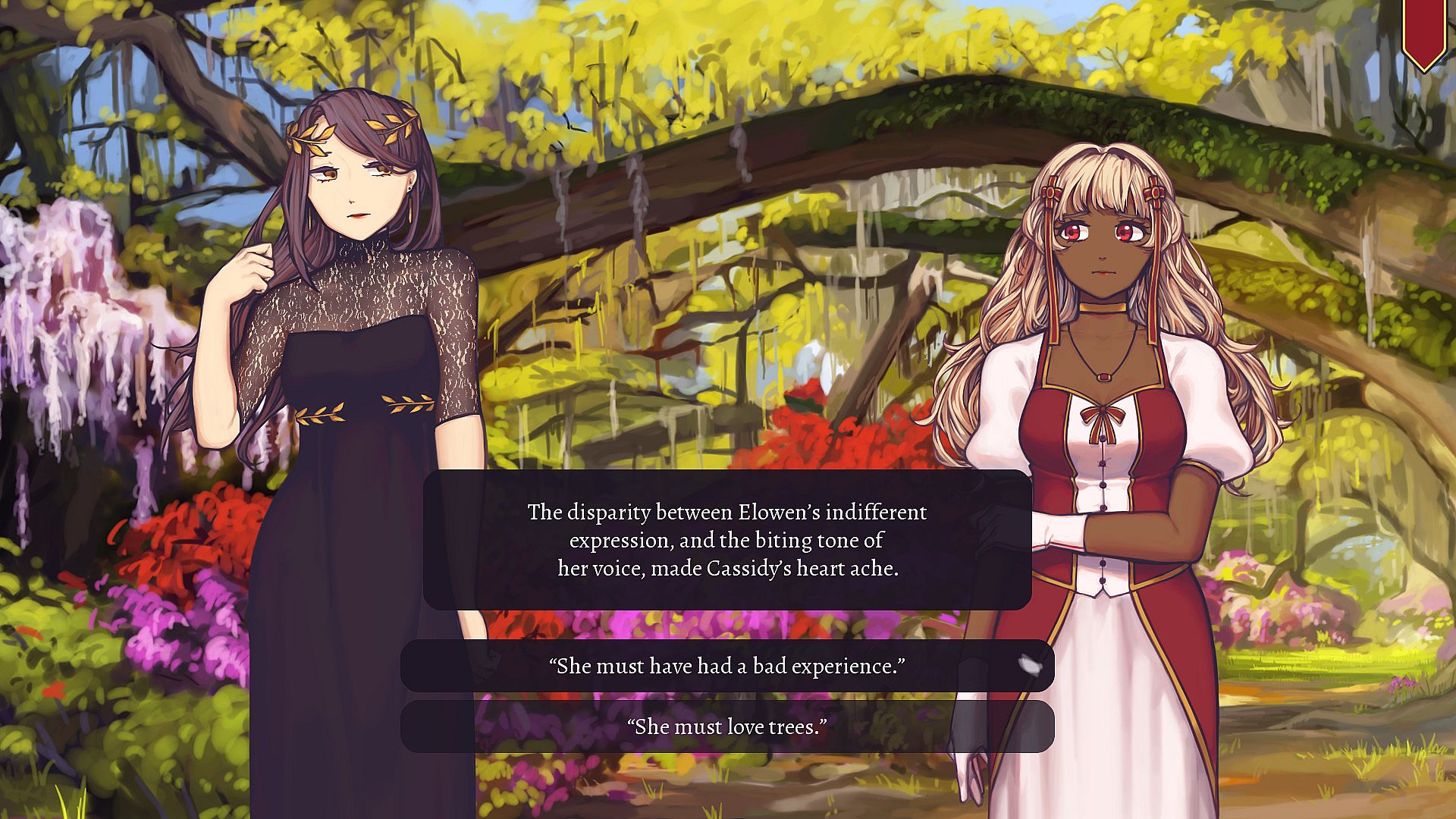 In the depths of a dark and unforgiving forest, an exiled princess whiles her time in solitude. For a girl raised in the lap of comfort, the woods are impossibly harsh, and day-to-day survival is the most she can manage. One day, however, a mysterious, beautiful maiden appears, throwing her world out of its already delicate alignment. The princess is instantly captivated by this stranger, and begins to fancy herself the heroine of a fairytale, even as the maiden proves herself to be less and less of a fantasy.