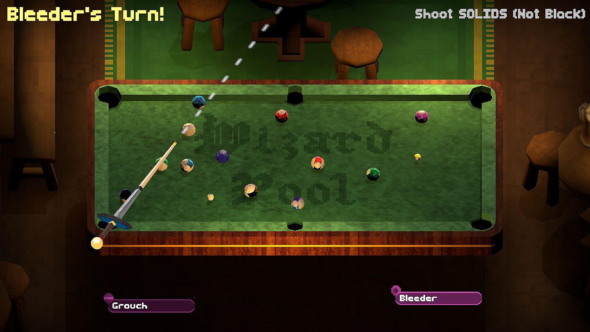 A single match can last anywhere between 10 seconds and 10 minutes. Wizard Pool features over a dozen unique Pool Sticks to collect, 64 levels of singleplayer fun, and 2-6 players in local/online multiplayer!