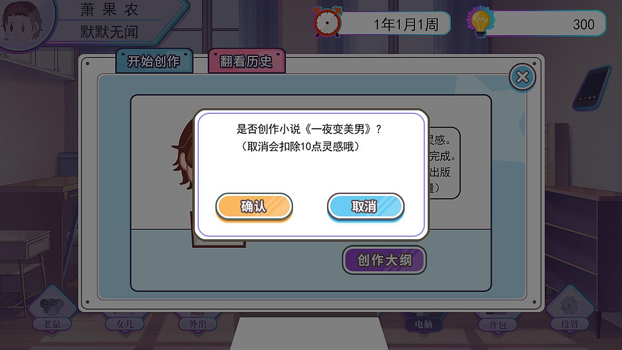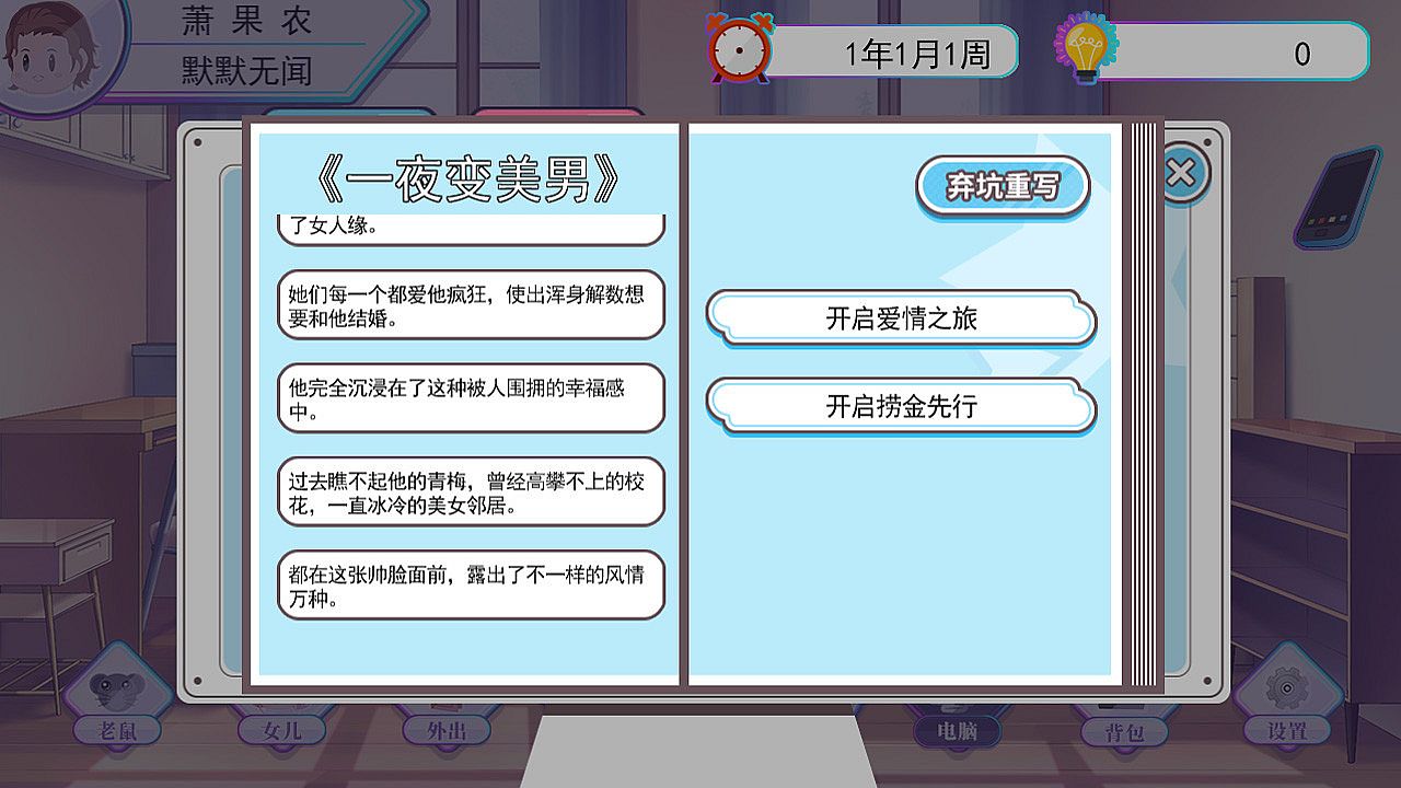 The countdown to the game is 2 years, and player operations are calculated based on week. The background room of the main interface will change according to the house the player buys.