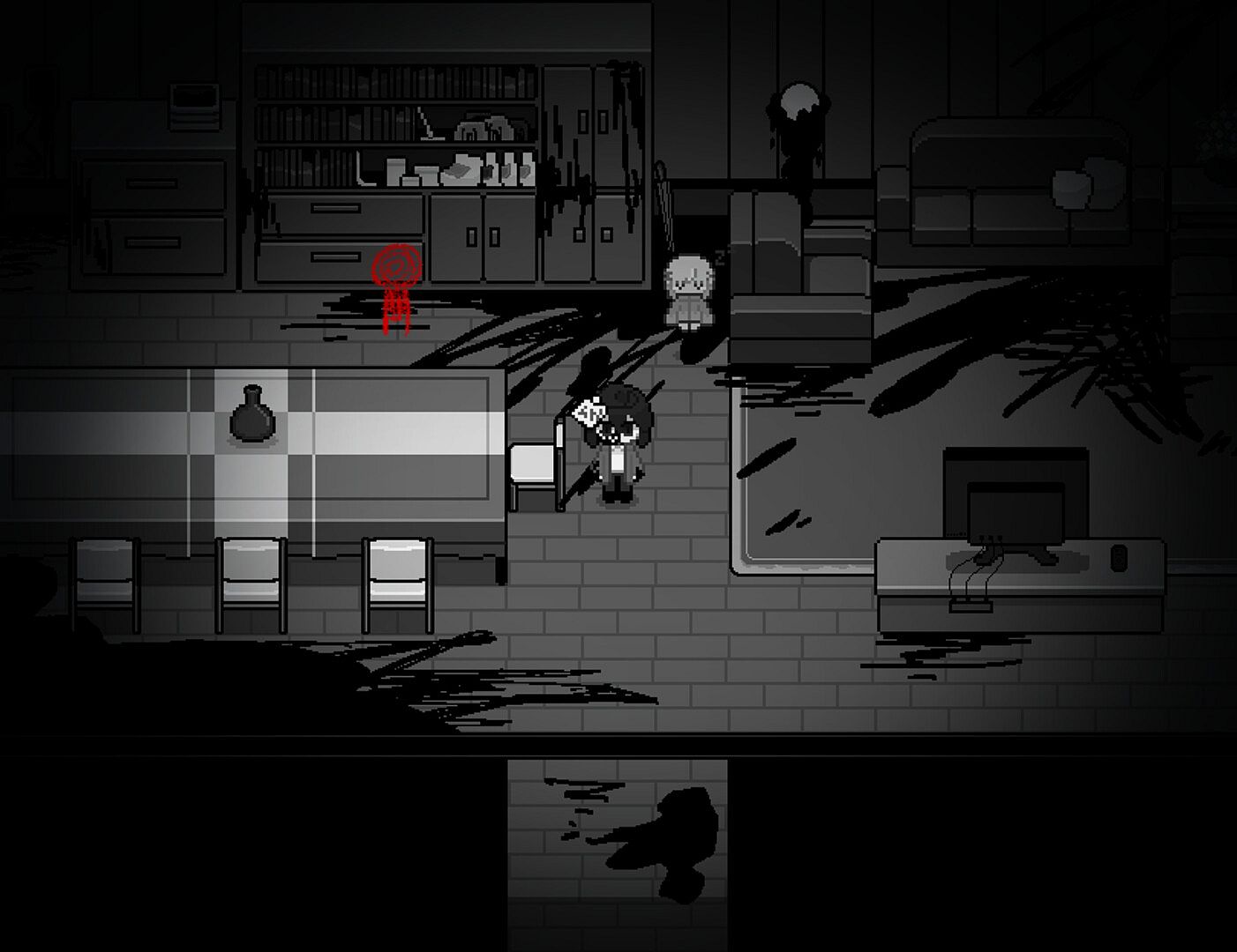 *这是一款像素风、剧情向rpg游戏,玩家需要探索隐藏在这个小镇之下的未知区域,同时注意自己的san值和状态,
