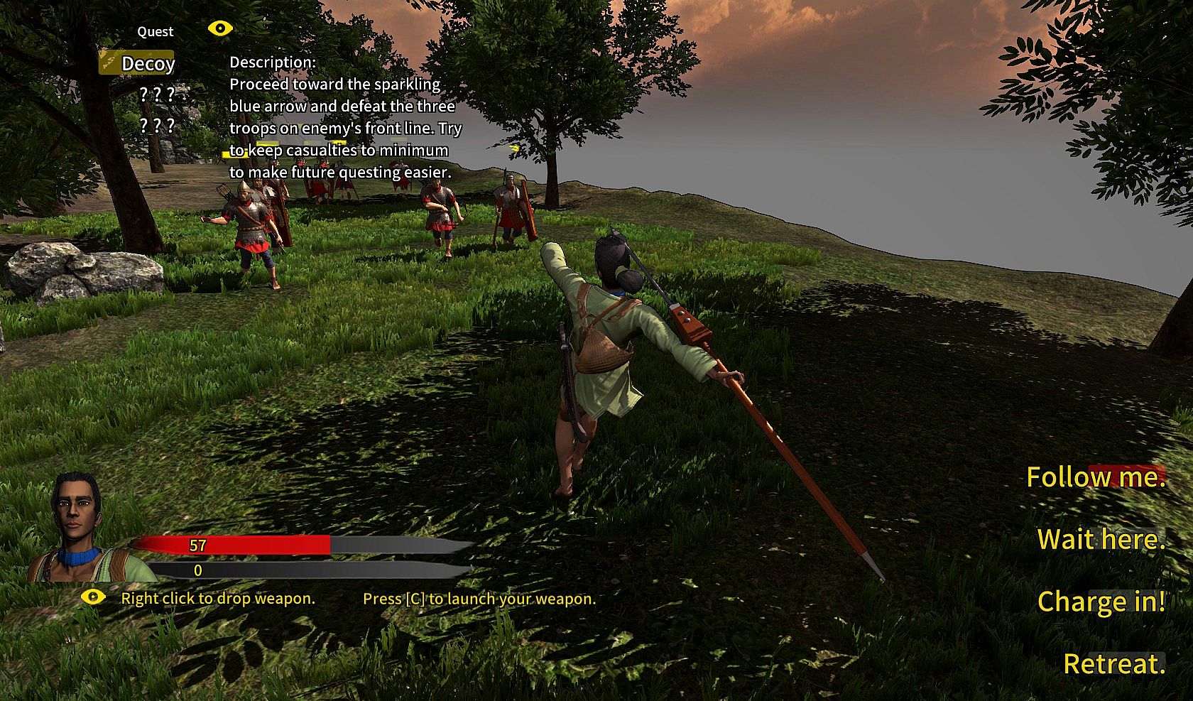 - The warrior can captivate the enemy and use weapons dropped by others.