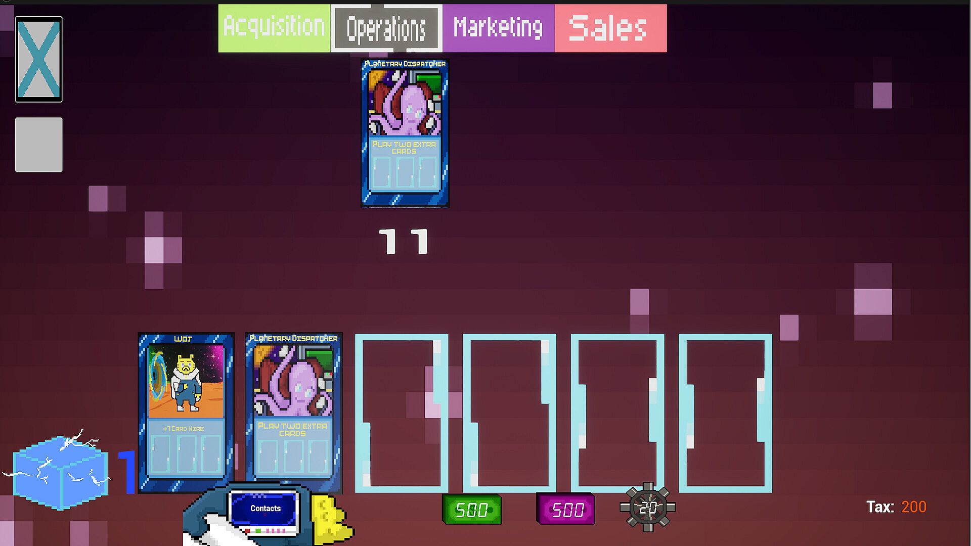 Start the day with an innovative deckbuilding approach of heirachal card playing to gain resources, alter gameplay mechanics and more!