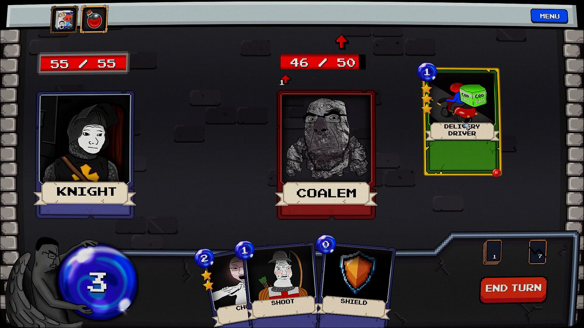 Step into the depths of Bog’s Tower in this Deckbuilding Roguelike, where every run is randomly generated and filled with enemies that embody the struggles of the modern age