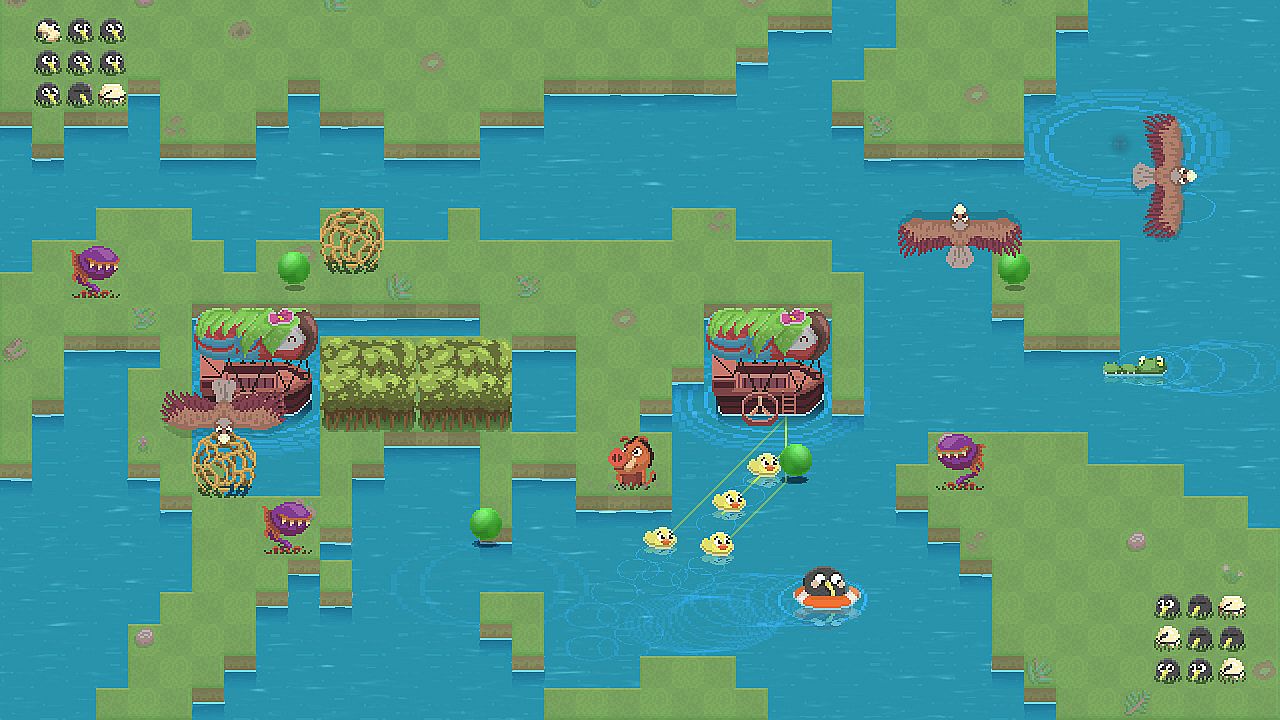 The chicks hatch from the eggs on the islands and start walking towards the rescue airship. On the way they will have many predators.