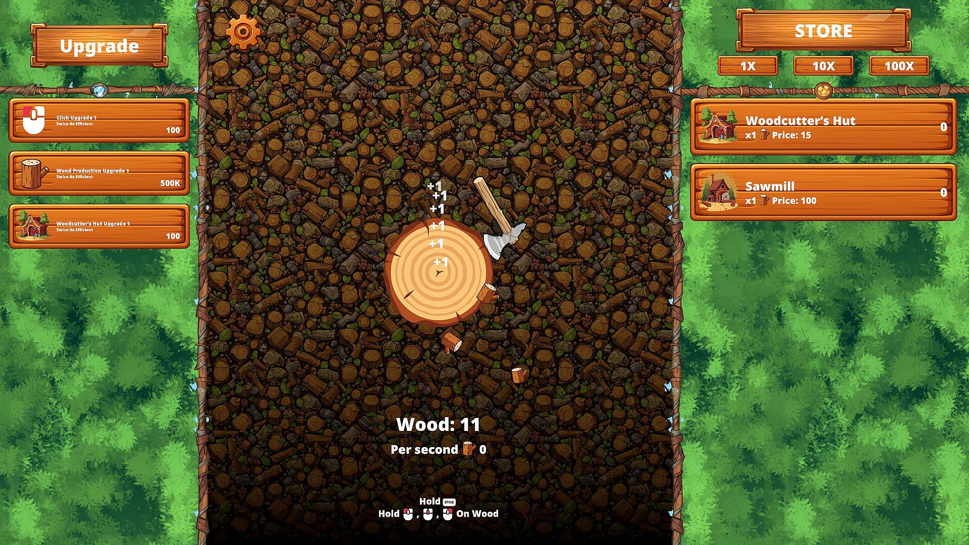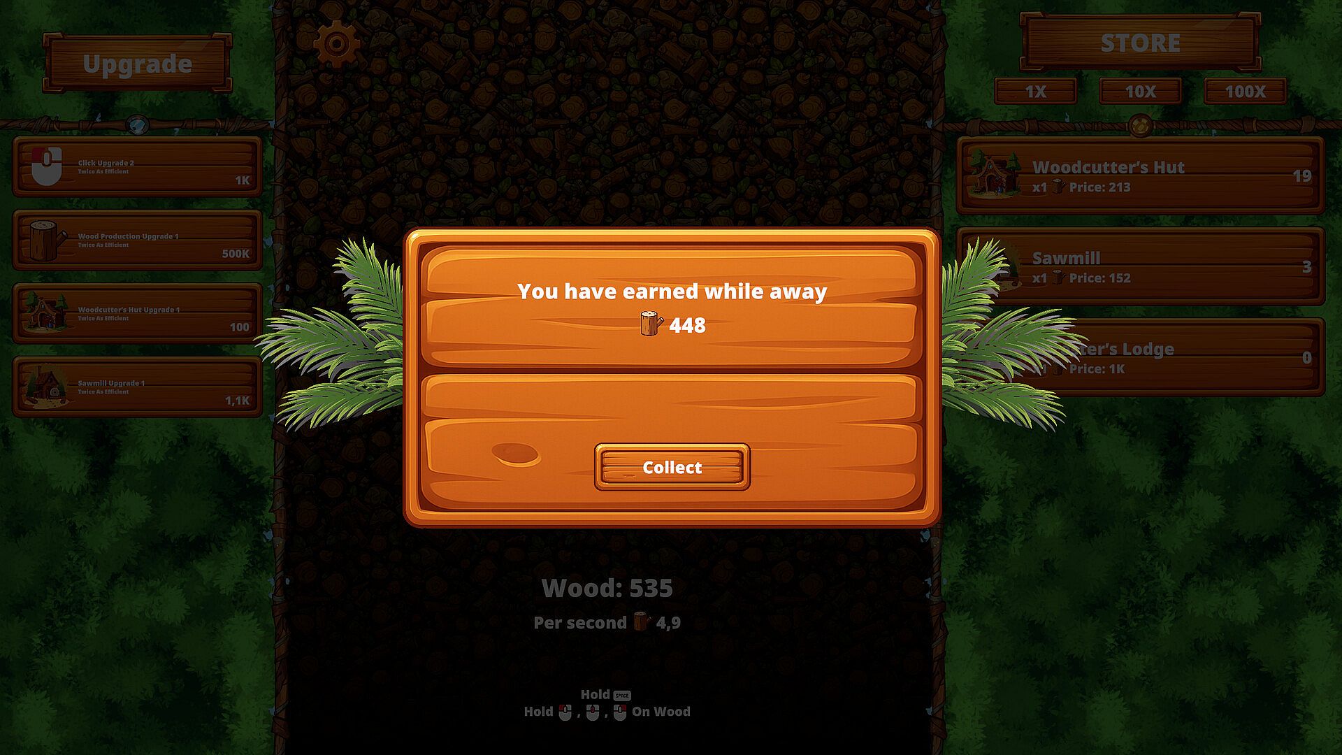 Upgrades & buildings — expand your wood income and efficiency