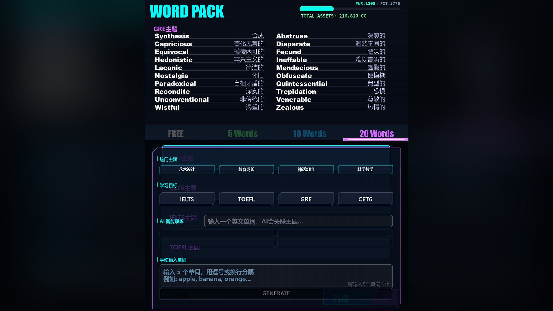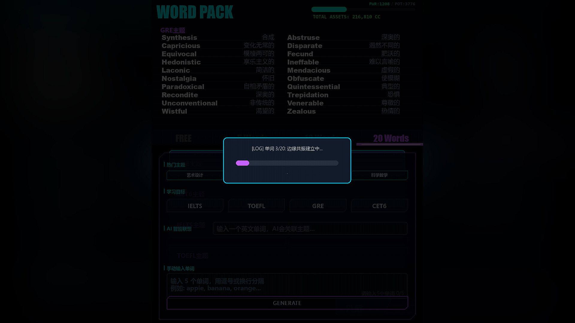 Infinite AI Word Pack Customization: There are no limits! You can use AI technology to instantly generate brand new, highly targeted English word training packs based on your personal preferences or professional needs.