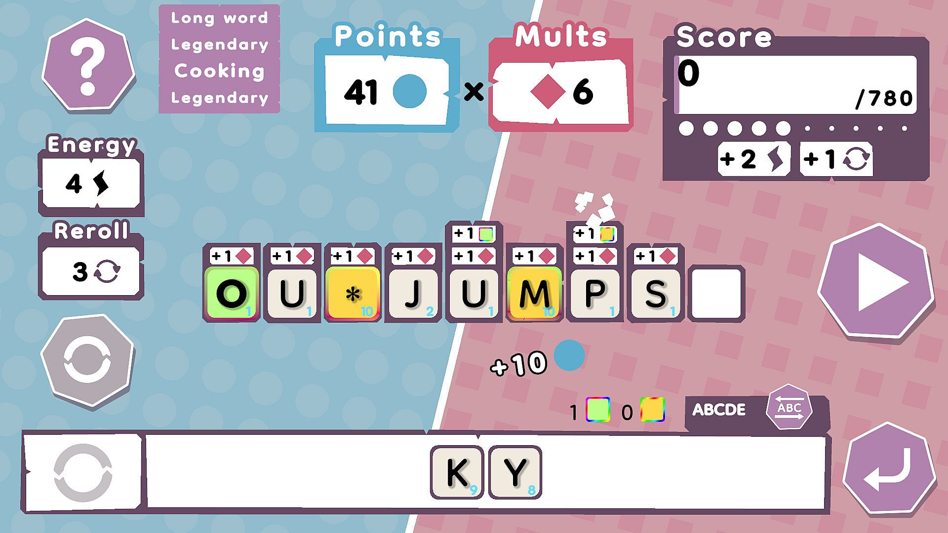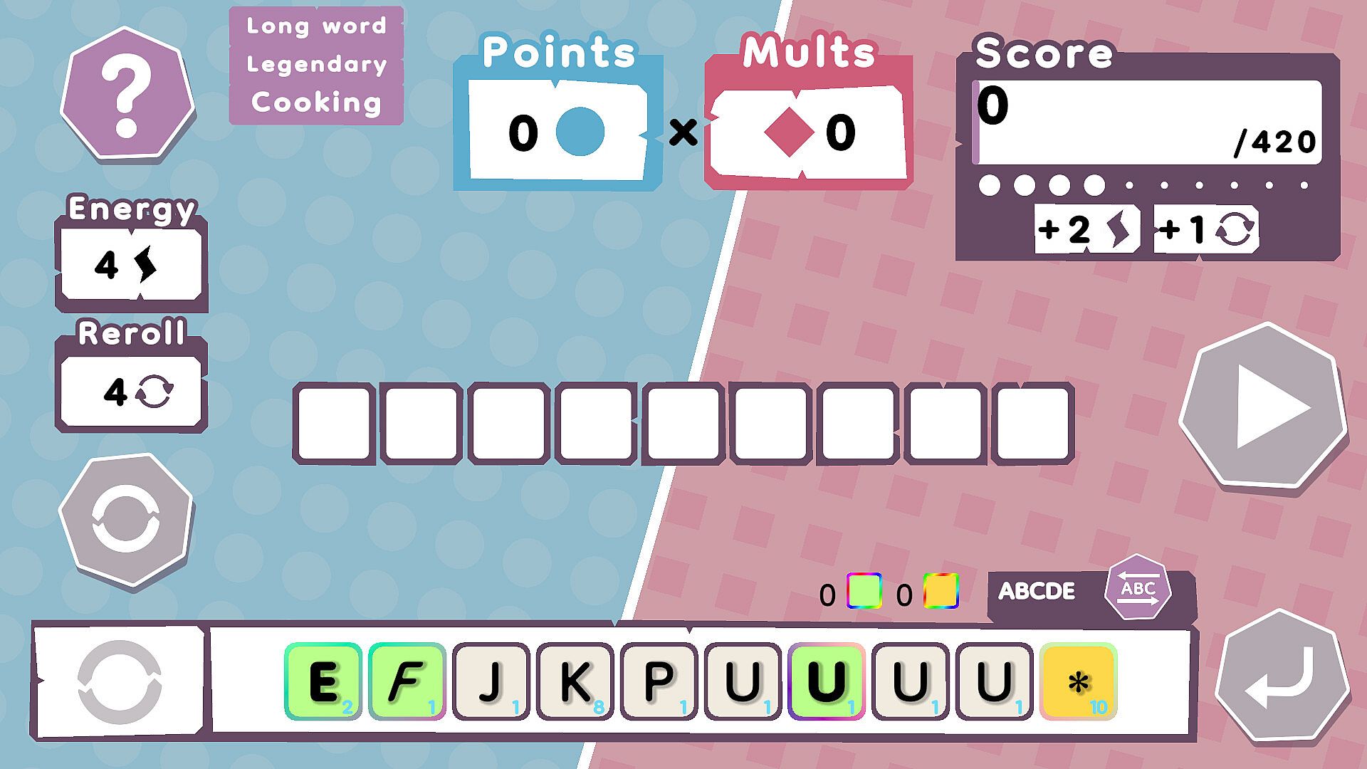 Choose your words, special letters, and bonuses wisely to rack up combos, score big, and level up! But watch out, you’ve only got a limited number of tries to hit the target score. Need help? Reroll your letters and hope for a better hand!